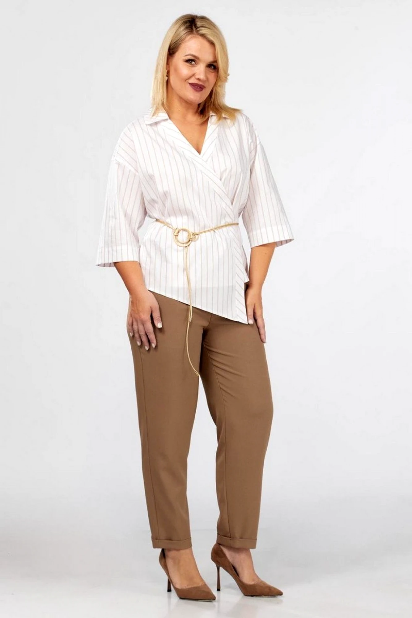 Брючный костюм Милора Стиль 1340 двойка белый, какао