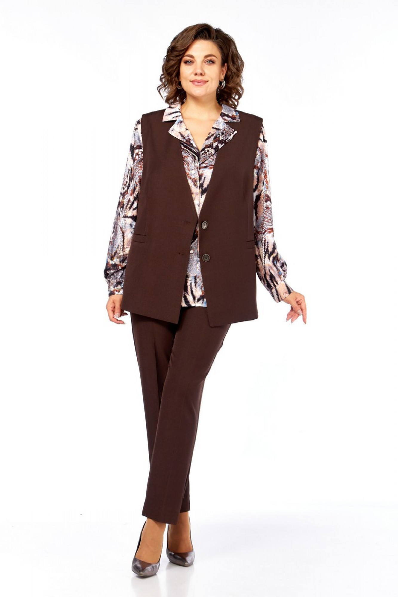 Костюм/комплект Милора Стиль 1375 тройка шоколад + абстракция