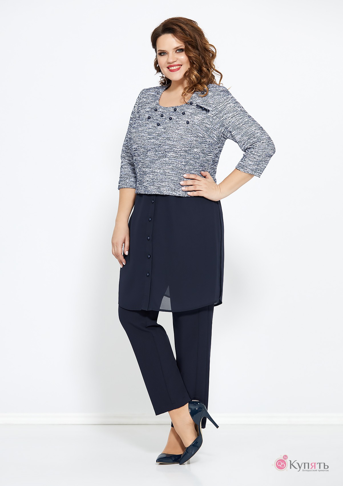 вискоза 60%, ПАН 34%, хлопок 6%; брюки - полиэстер 73%, вискоза 25%, спандекс 2%
