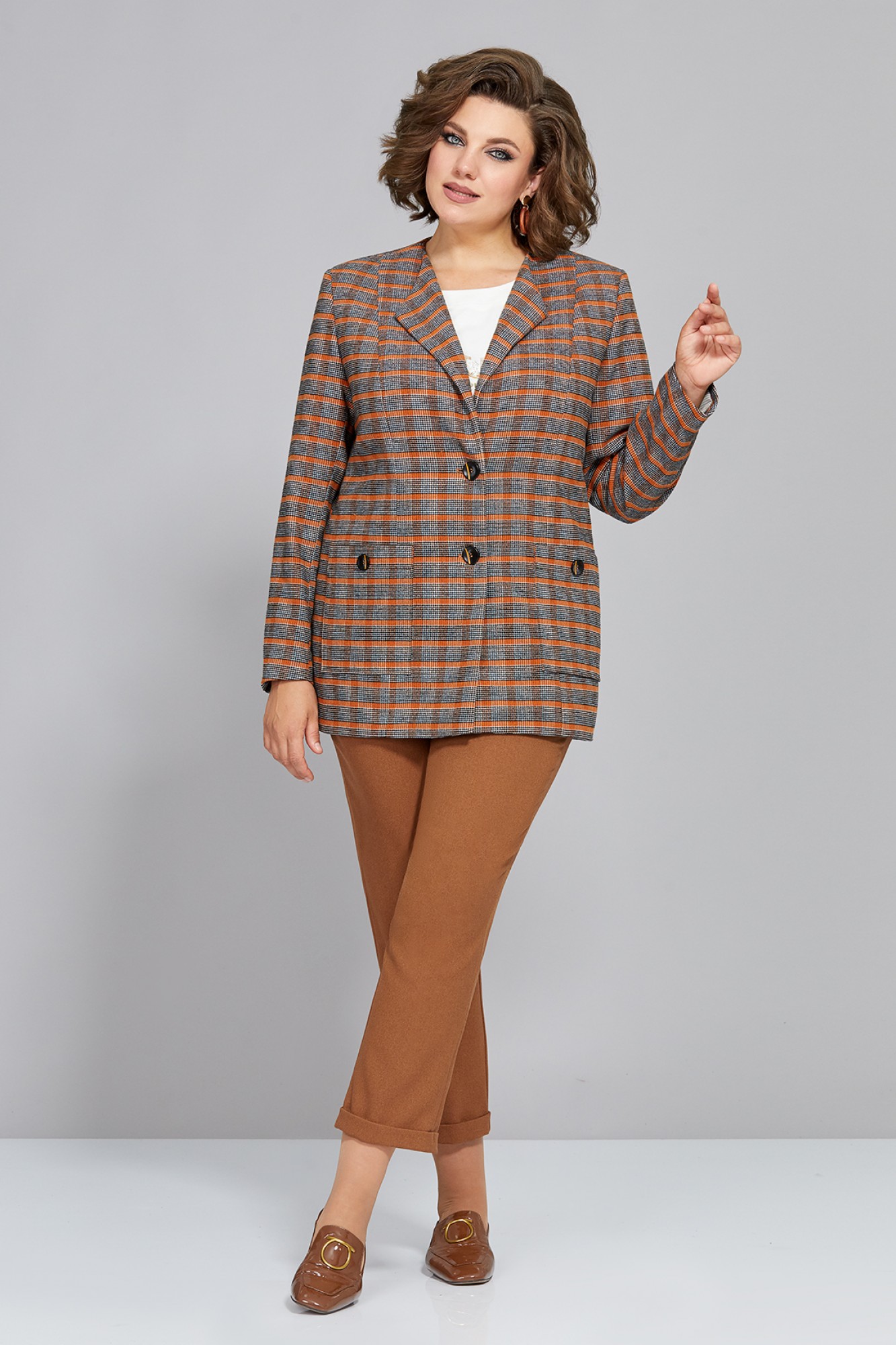 Брючный костюм Mira Fashion 5284 коричневый, клетка с ID товара 371909