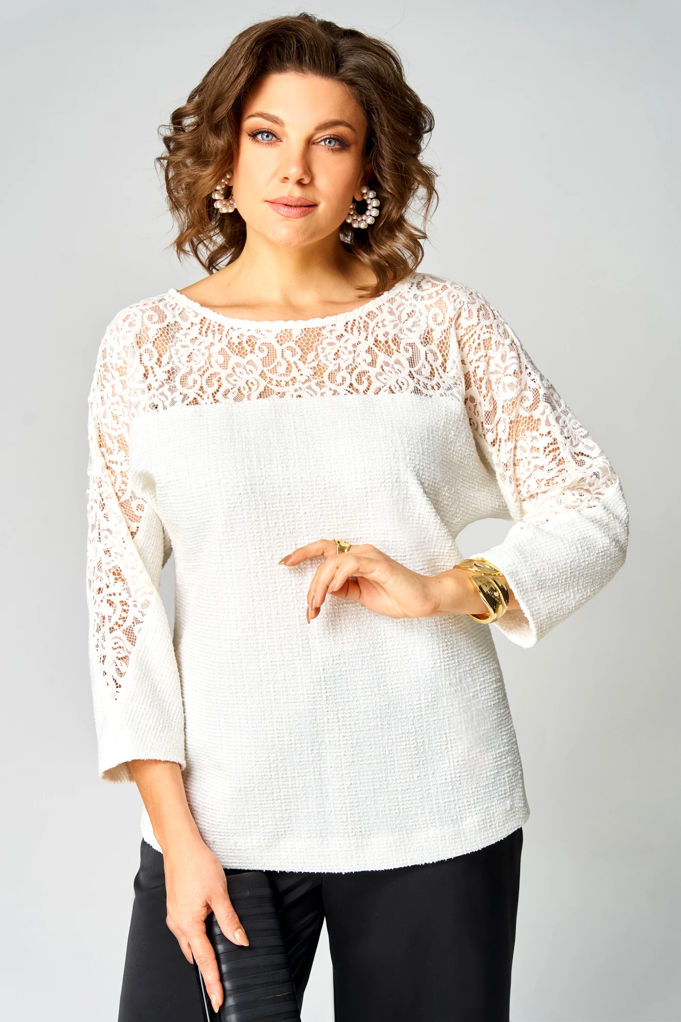 Брючный костюм Мишель Стиль 1335 бело-черный