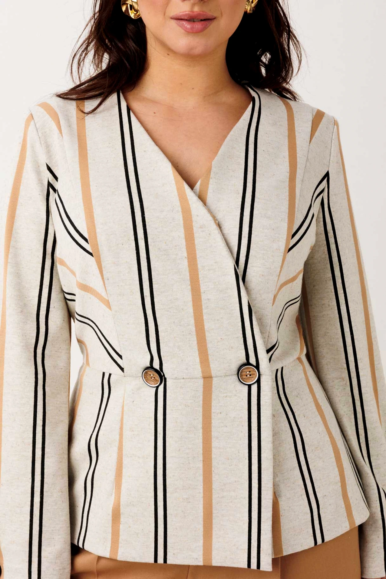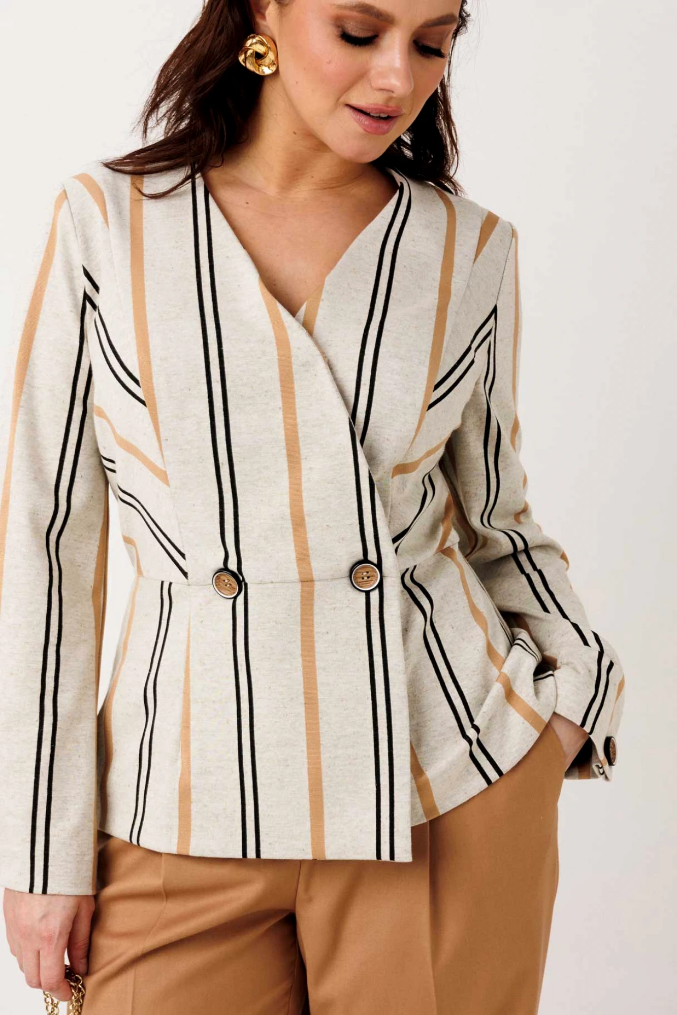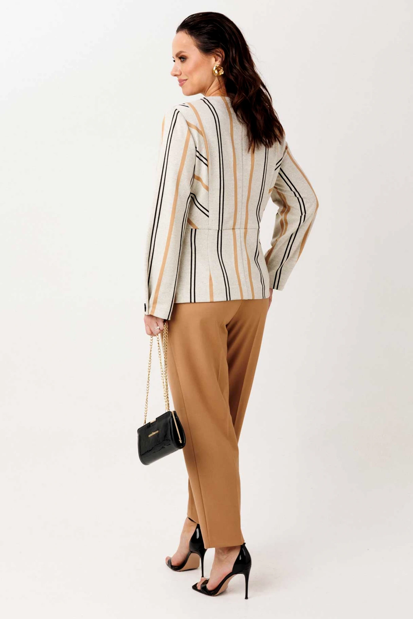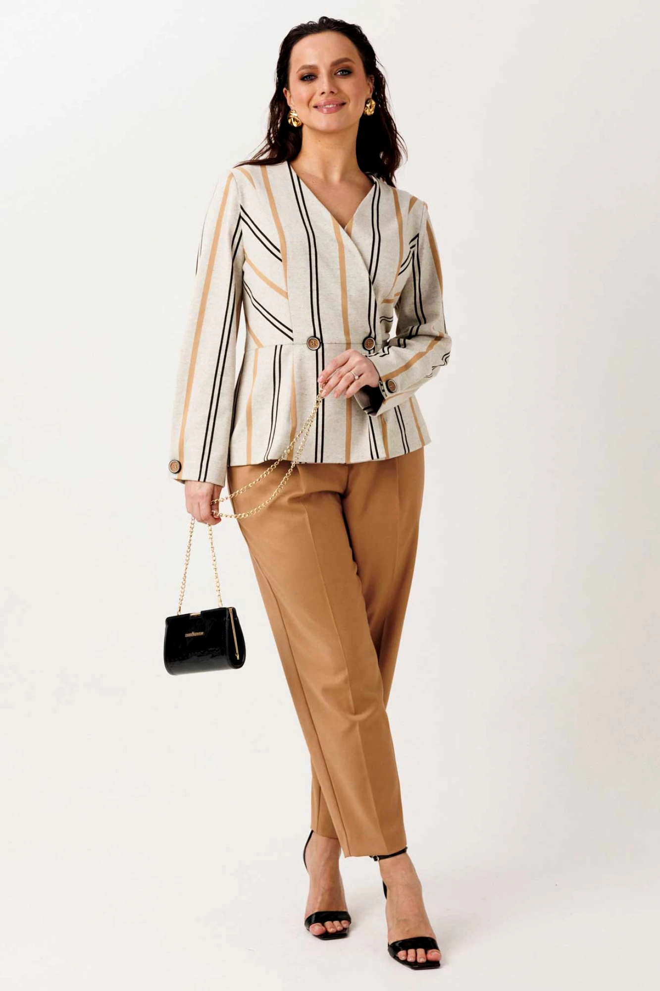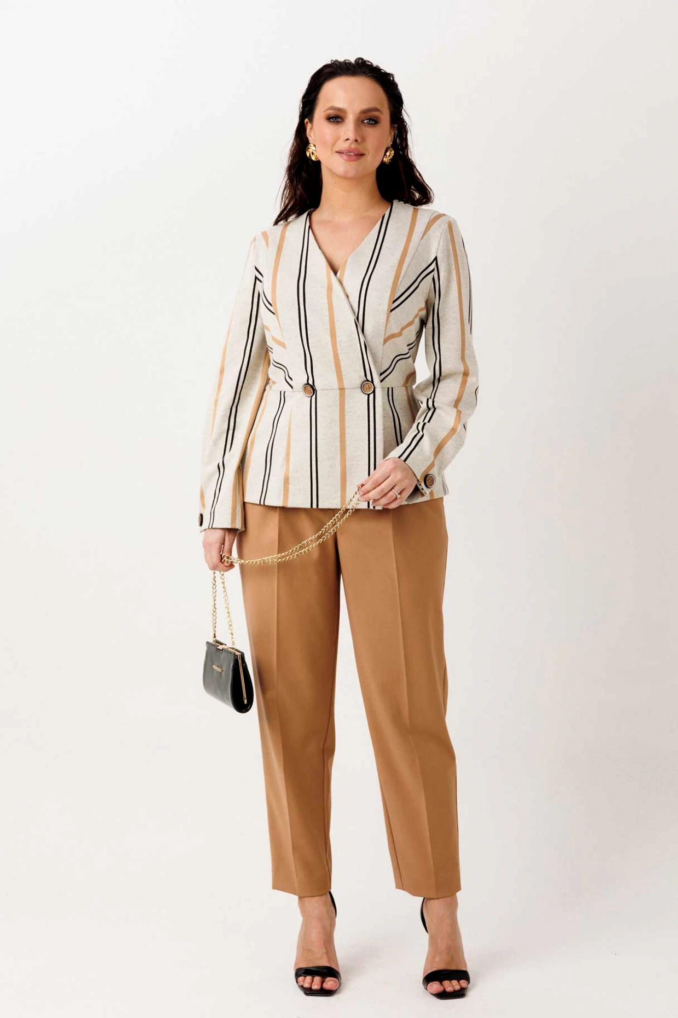 Брючный костюм MisLana 1303 двойка горчичный, бежевая полоска