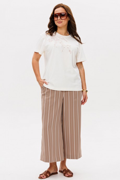 Брючный костюм MisLana 1886 двойка бежевый, белый
