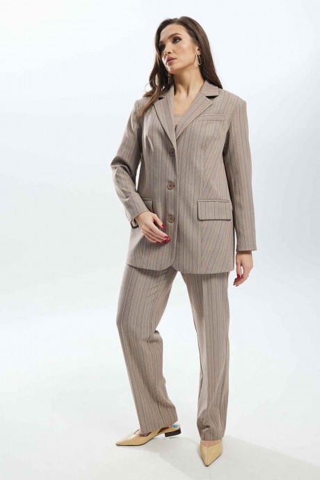 Жакет полуприлегающего силуэта удлинённый, с центральной застёжкой на две прорезные петли и пуговицы.