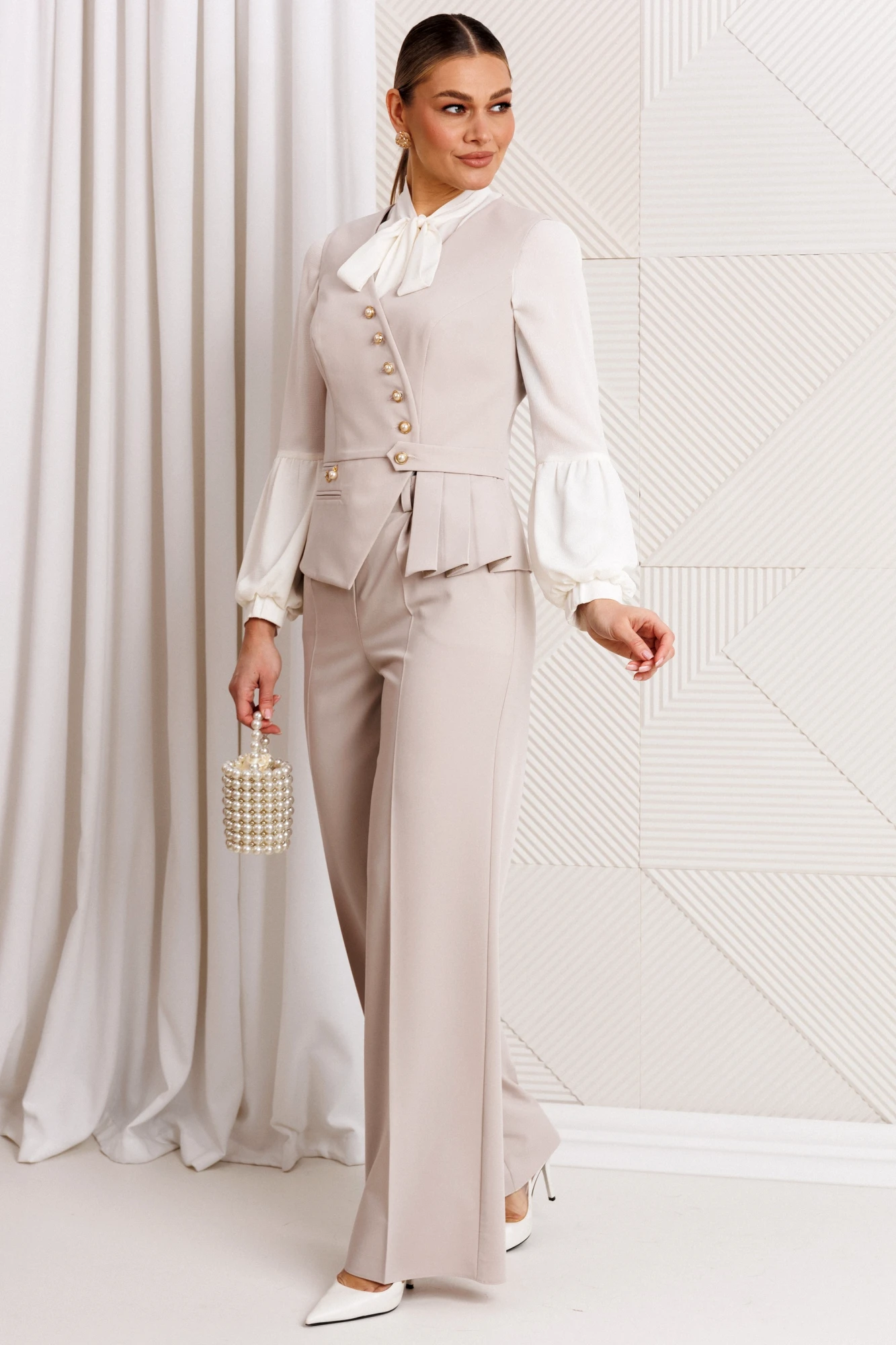 Брючный костюм Мода Юрс 2912 бежевый