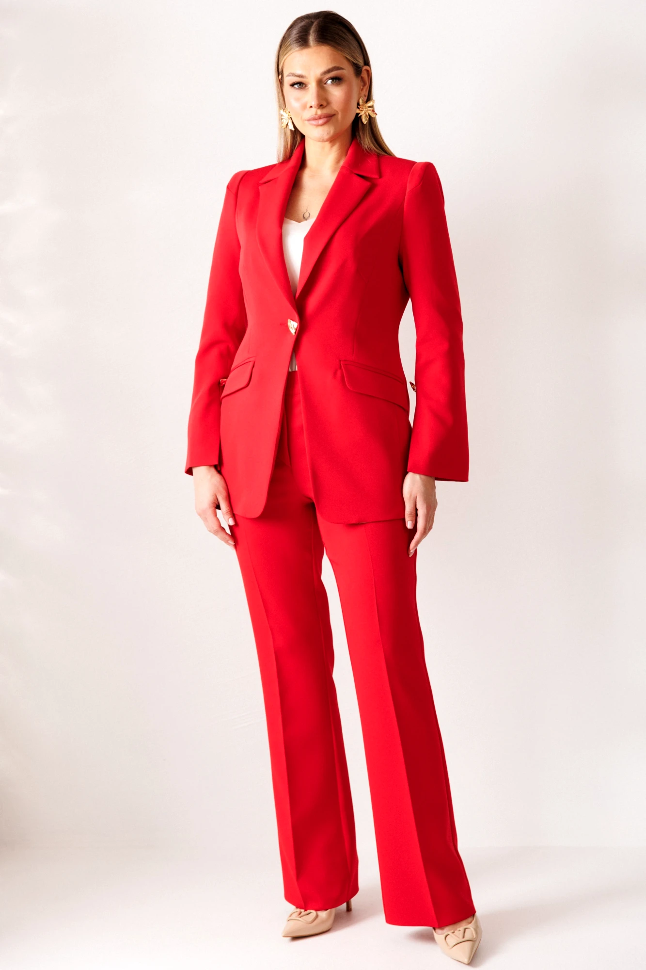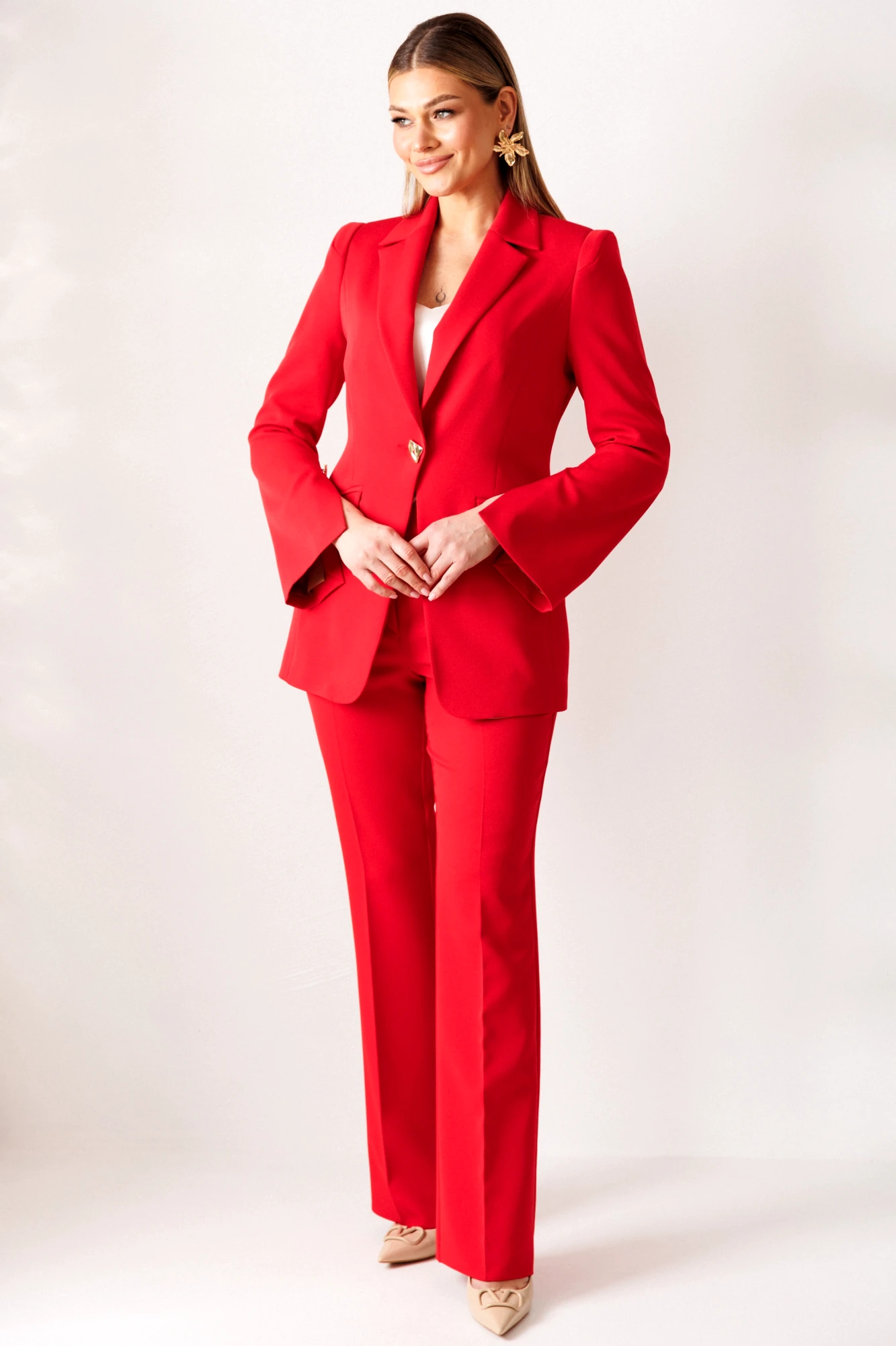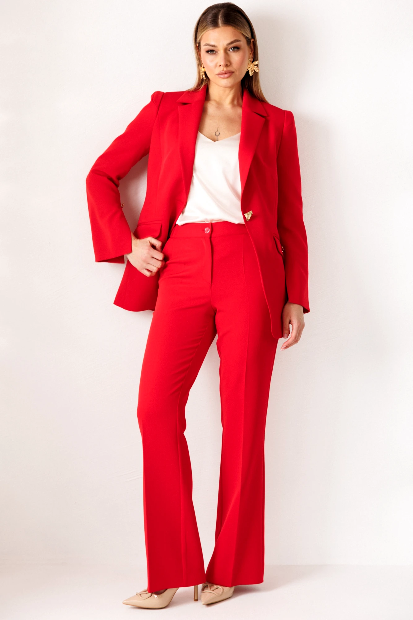 Деловой комплект, состоящий из жакета и брюк. Жакет - воплощение стильной трансформации. Его классический крой выполнен из безупречной костюмной ткани, но в деталях скрывается своенравный характер. Жакет полуприлегающего силуэта. Модель отличается аккуратным кроем и стильными деталями. На передней части жакета обработаны вертикальные рельефы, идущие от проймы до уровня кармана и от кармана до низа, что придаёт силуэту выразительность и стройность. Воротник пиджачного типа добавляет классической элегантности. Застёжка центральная бортовая на петлю-пуговицу. Карманы в рамке с клапанами, гармонично расположены на передней части жакета. Спинка с центральным швом и вертикальными рельефами, идущими от проймы. Рукава двухшовные с отрезной деталью по окату и разрезами внизу добавляют свободы движению и делают модель более интересной. Жакет на подкладке. Брюки с высокой посадкой, по линии талии – притачной пояс, в боковых швах резинка. Застежка на молнию.