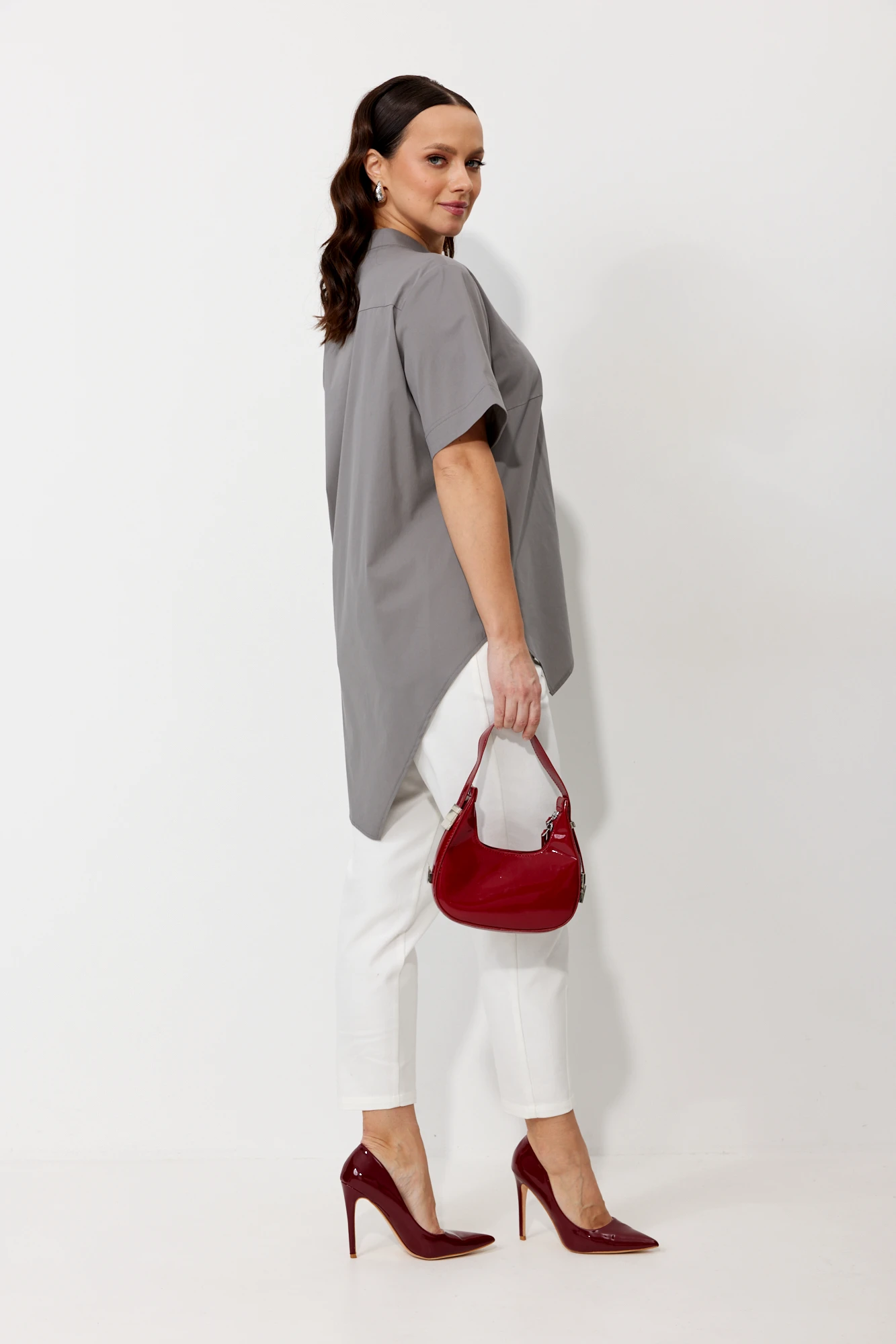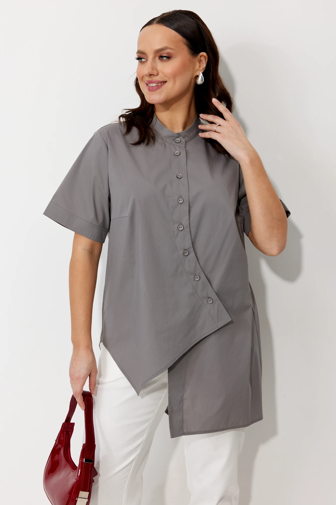 Брючный костюм Мублиз плюс 157 серый, белый
