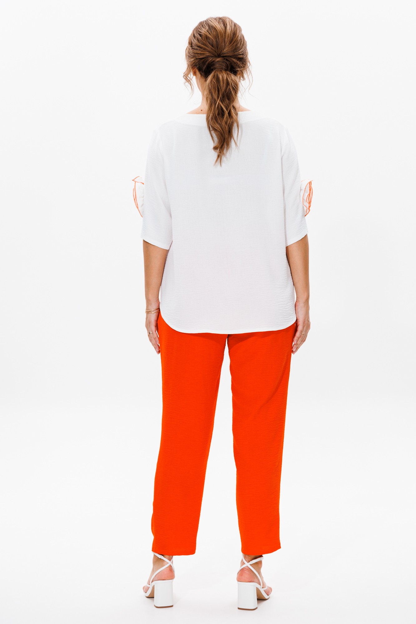 Брючный костюм Мублиз плюс 181 двойка белый, оранжевый с ID товара 395955
