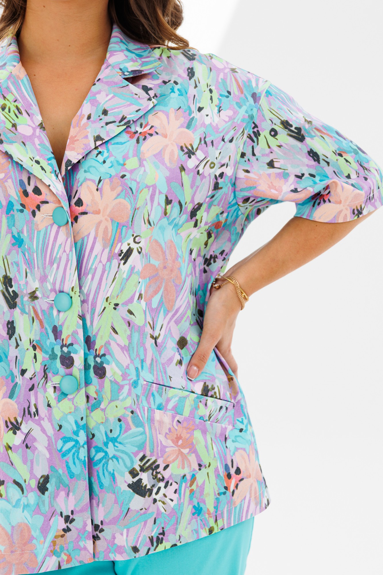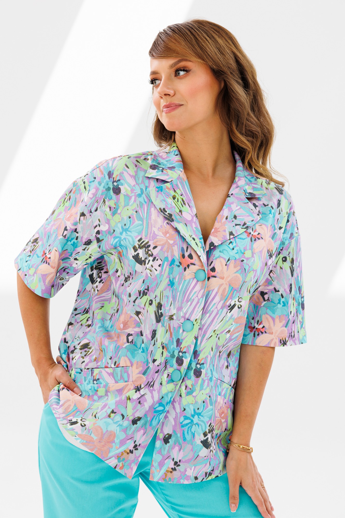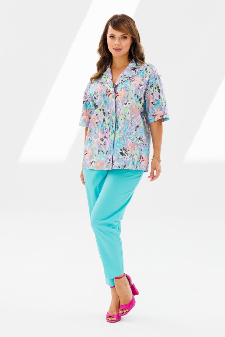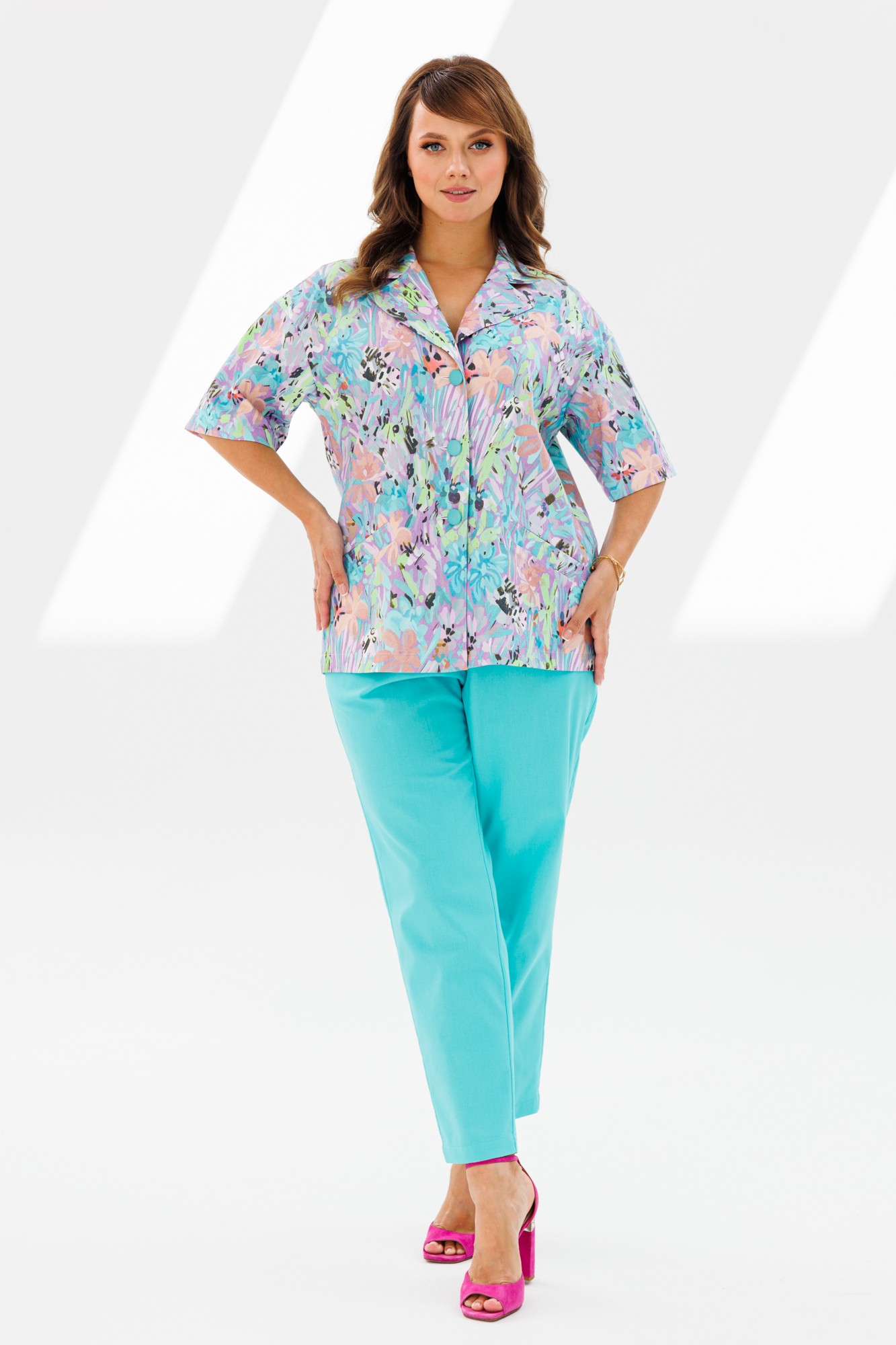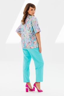 Брючный костюм Мублиз плюс 194 бирюза, разноцветный принт