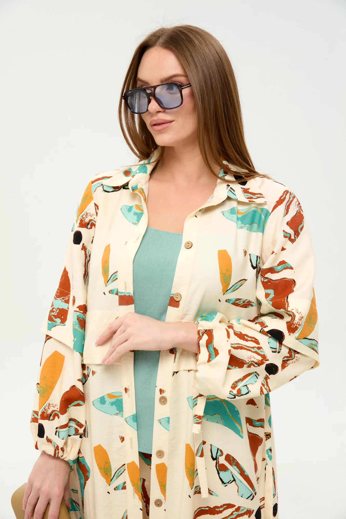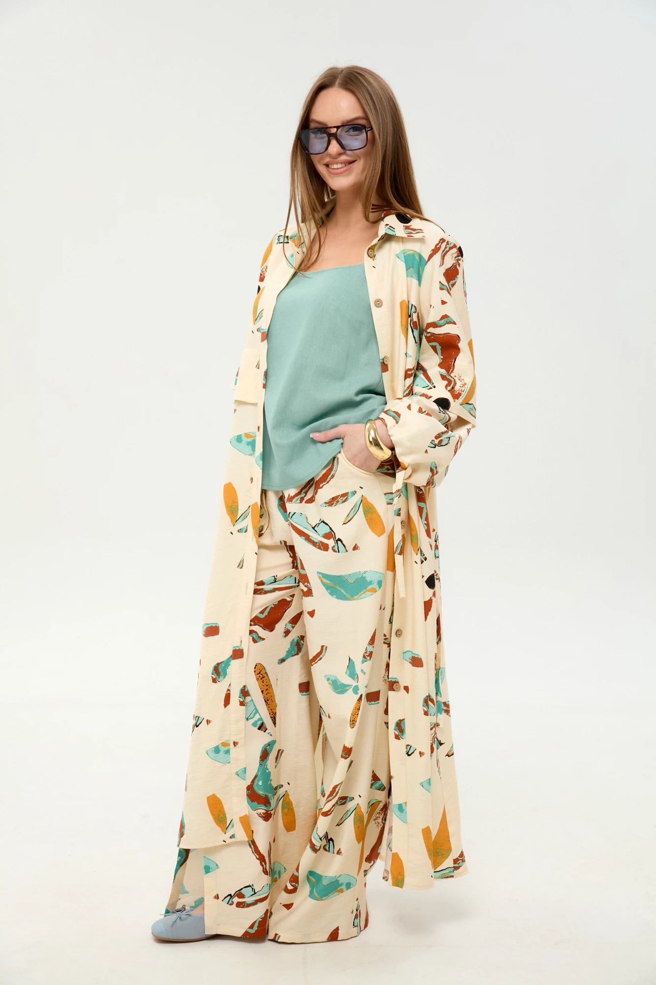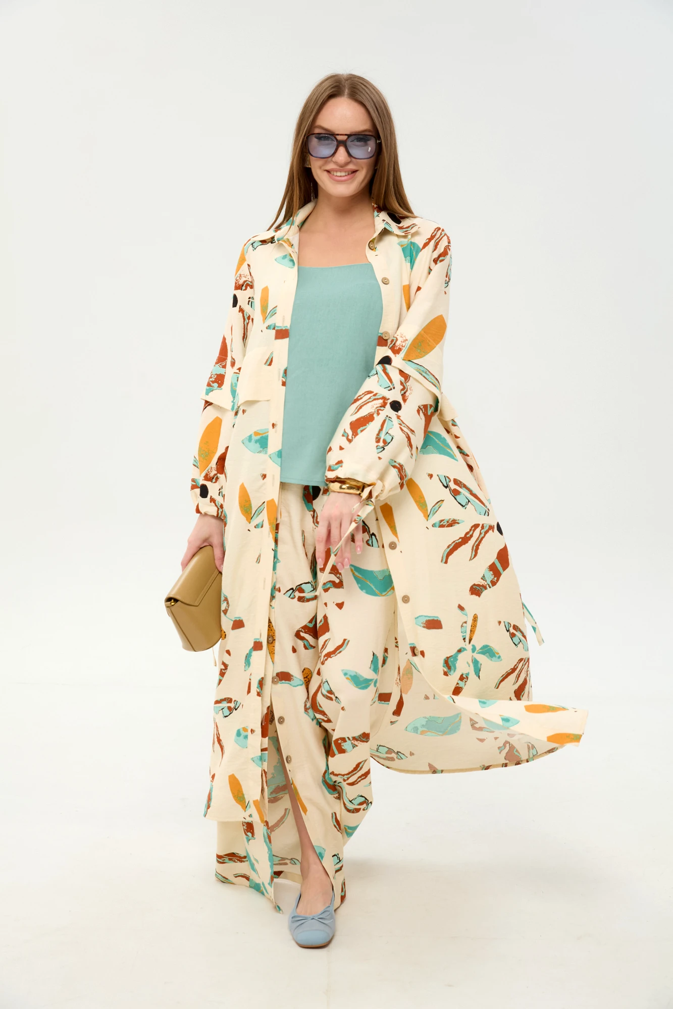 Брючный костюм NikVa н976 тройка -7 мята и бохо мультиколор