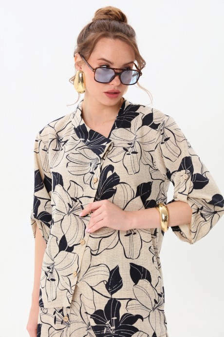 Брючный костюм NikVa н978 -2 сине-песочные лилии