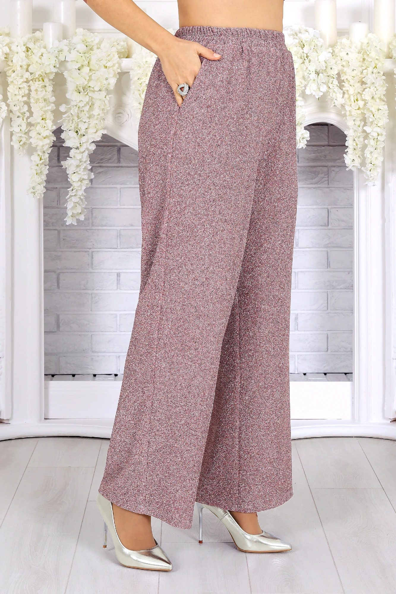 Это не просто наряд — это ваша уверенность, статус и блеск, который будет сопровождать каждый ваш шаг. В этом костюме каждая деталь продумана так, чтобы создавать ощущение безупречного стиля и лёгкой роскоши. Мягкое мерцание люрекса делает образ выразительным и дорогим, а утончённый крой подчёркивает женственность и гармонию силуэта. Блузка с асимметричной деталью по линии талии — это модный акцент, который визуально формирует стройный силуэт и придаёт образу дизайнерскую изысканность. Нежная линия декольте в обрамлении округлой горловины элегантно подчёркивает женственность. Брюки прямого силуэта с комфортной посадкой — символ утончённой простоты и свободы. Эластичный пояс обеспечивает удобство, а мерцающая фактура ткани делает их достойным элементом вечернего гардероба. Такой костюм создан для особых случаев: новогодних вечеров, корпоратива, праздничного ужина или выхода в свет, но при этом он настолько универсален, что легко впишется и в деловой стиль. Комплект брючный 2-х предметный, состоящий из блузки и брюк. Блузка полуприлегающего силуэта, выполнена из трикотажного полотна с фактурной лицевой стороной «люрекс». Модель без подкладки, с плечевыми накладками. Спинка с таллиевыми вытачками и средним швом. По линии талии в левой части переда – горизонтальный подрез с односторонними складками и отлетной деталью в шве. По линии талии в правой части переда обработан цельнокроеный пояс, край которого крепится в левом боковом шве. Горловина округлая, углубленная спереди. Рукав длинный, втачной. Длина блузки – 62 см. Длина рукава – 57 см. Брюки длинные, с посадкой на талии, выполнены из трикотажного полотна с фактурной лицевой стороной «люрекс». Модель без стрелок, без застежки. Спереди обработаны наклонные боковые карманы. Для лучшего прилегания по линии талии в притачном поясе предусмотрена эластичная лента, вставленная по всей длине. Длина брюк по боковому (с поясом) – 106 см (50-52 р-р), 107 см (54-58 р-р).