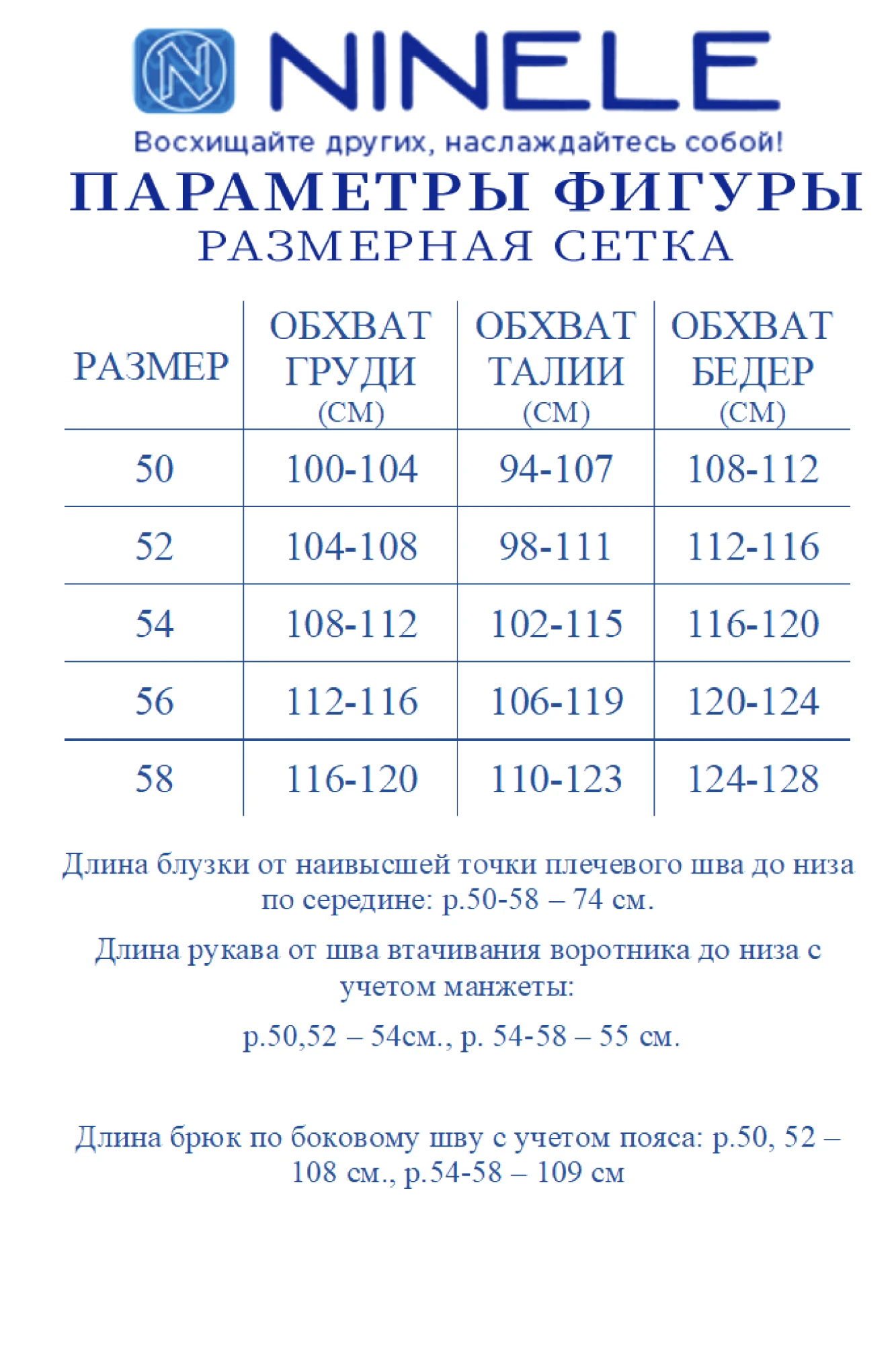 Таблица размеров