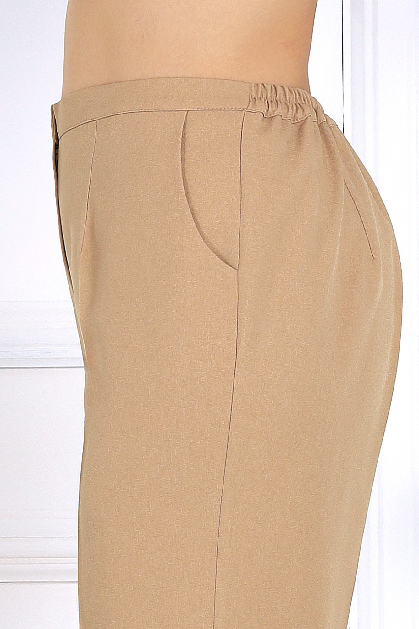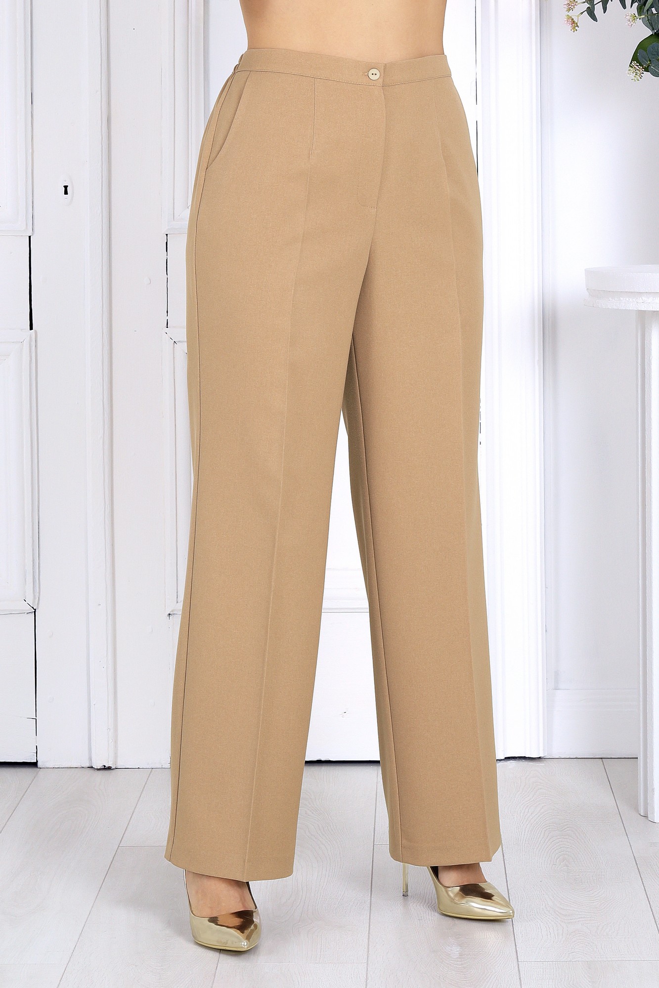 Двубортный брючный костюм — выбор тех, кто предпочитает стиль с характером. Эффектная асимметрия, дизайнерская застёжка и чёткая посадка делают этот комплект безупречным решением для яркого офисного дня, вечернего выхода или модного события. Он создан для тех, кто умеет сочетать деловую элегантность с фэшн-акцентами. Костюм брючный 2-х предметный, состоящий из жакета и брюк. Жакет двубортный, полуприлегающего силуэта, выполнен из костюмной поливискозы. Модель на подкладке, с плечевыми накладками. Спереди обработаны рельефные швы, направленные от пройм до низа; в нижней части переда расположены прорезные карманы с клапаном. Перед со смещенной внешней застежкой на 2 декоративные пуговицы и внутренней на 2 потайные. Спинка асимметричная, с одним косым рельефным швом, направленным от правого плечевого до низа; в шве обработана высокая шлица с застежкой на 2 декоративные пуговицы. На нижней части спинки, слева – имитация прорезного кармана «в рамку». Воротник пиджачного типа. Рукав длинный, втачной; в нижней части локтевого шва – имитация шлицы с застежкой на 3 пуговицы. Длина жакета - 66 см; длина рукава - 61 см. Брюки классические, с кантами и посадкой на талии, выполнены из костюмной поливискозы. Модель с центральной застёжкой на тесьму-«молнию», на притачном поясе, застегивающемся на петлю и пуговицу. Передние и задние половинки брюк с таллиевыми вытачками, направленными от пояса вниз. Спереди обработаны боковые наклонные карманы. Для лучшего прилегания брюк в области талии в поясе по задним половинкам вставлена эластичная лента. Длина брюк по боковому (с поясом)-107.