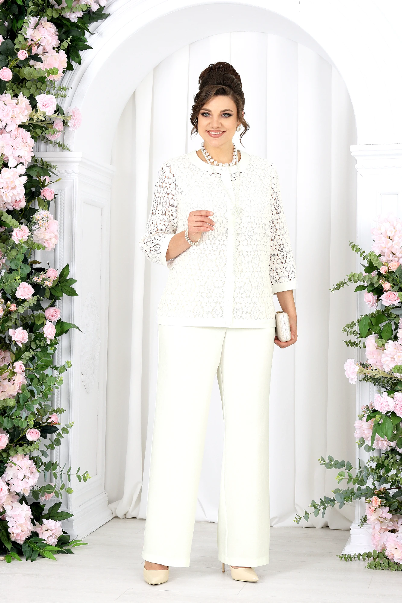 Брючный костюм NINELE 7518 тройка молочный
