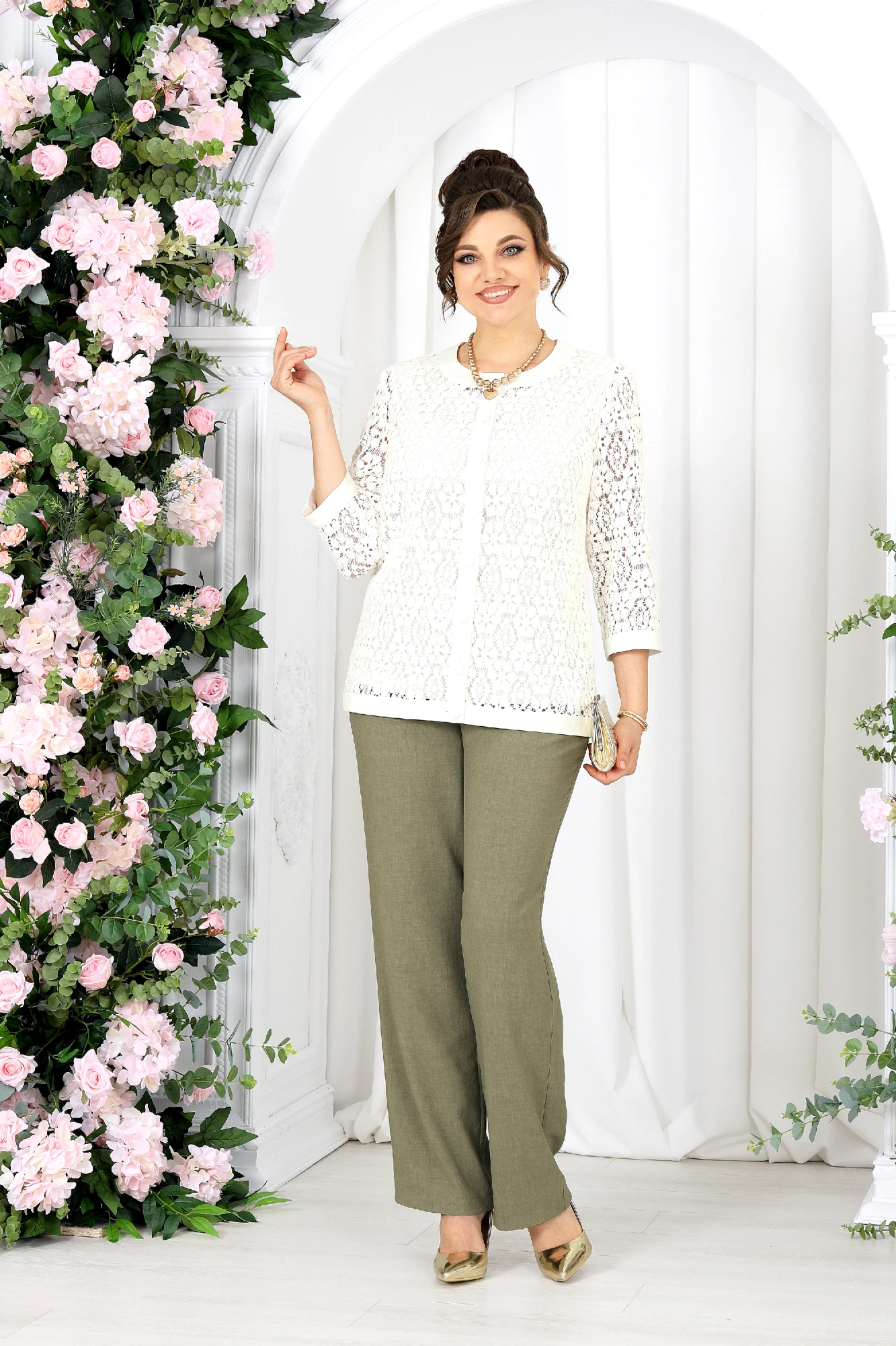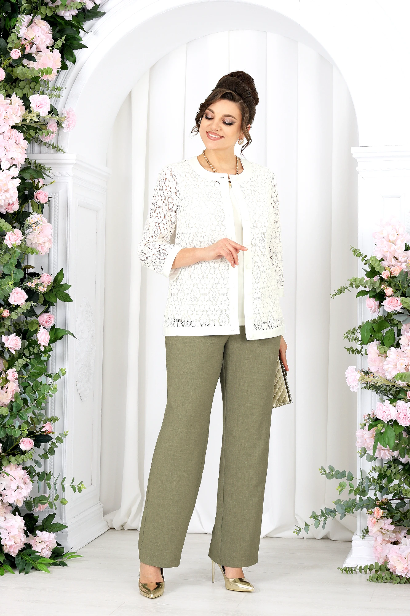 Брючный костюм NINELE 7518 тройка оливковый
