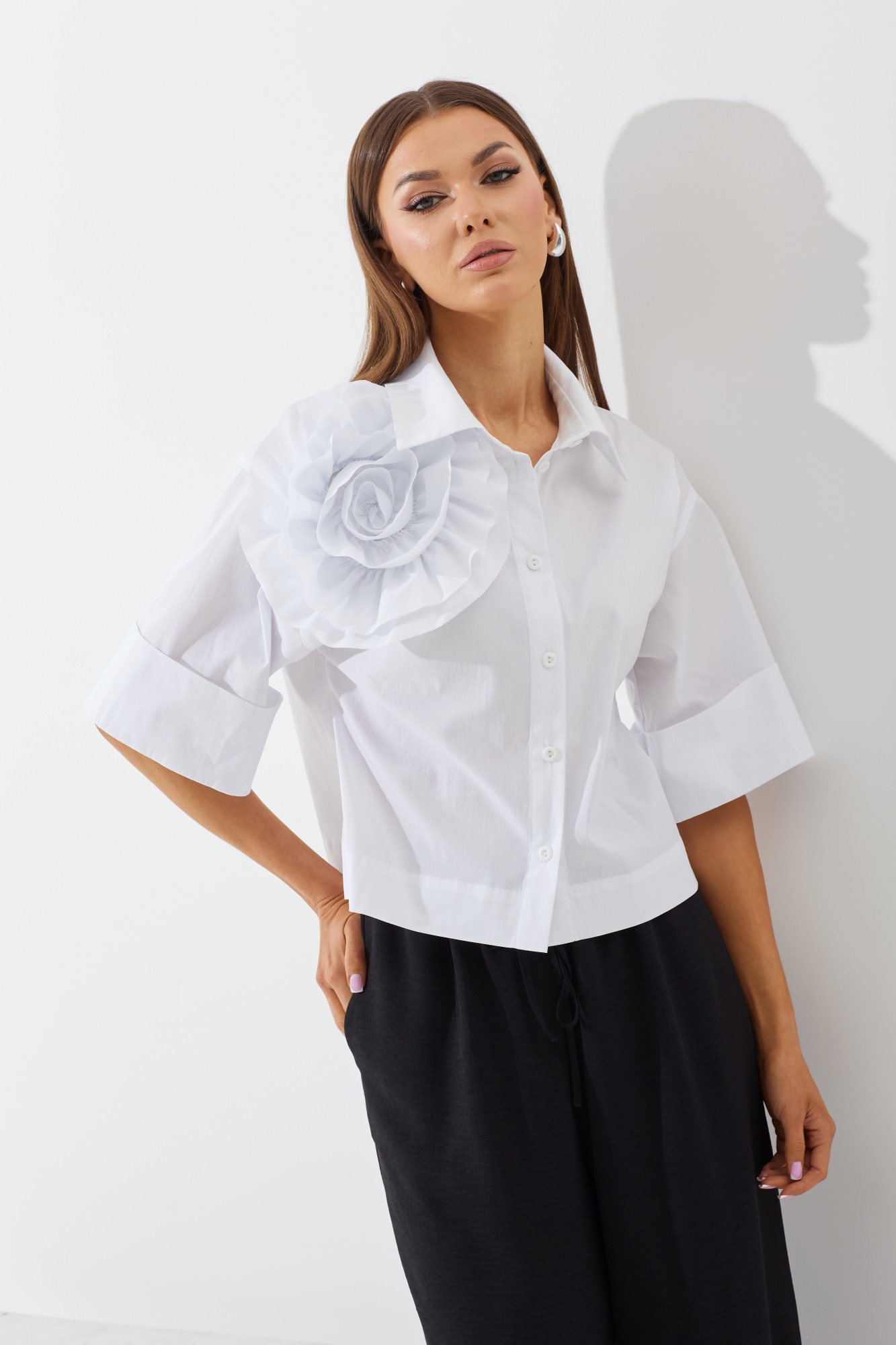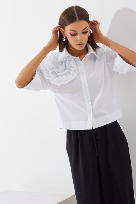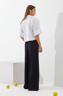 Блуза – хлопок 65%, вискоза 30%, спандекс 5%; Брюки – полиэстер 60%, вискоза 40%.
