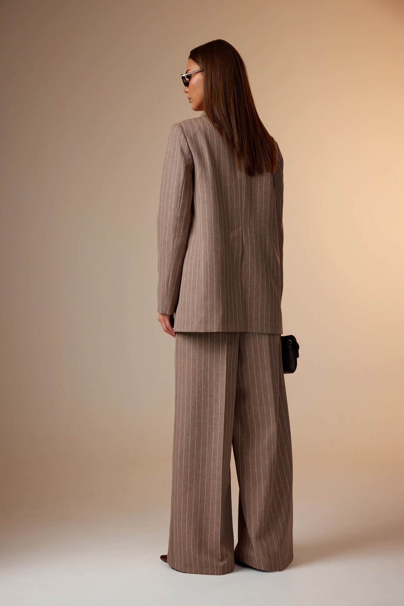 Брючный костюм N.O.W. 1660 тройка кофейный, полоска