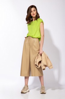 Брючный костюм OLegran 3861 тройка Бежевый +лимон неон с ID товара 331380