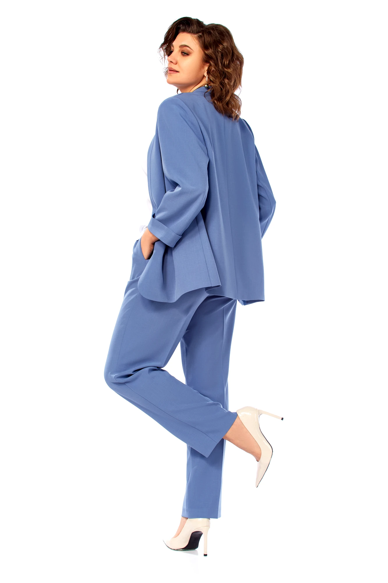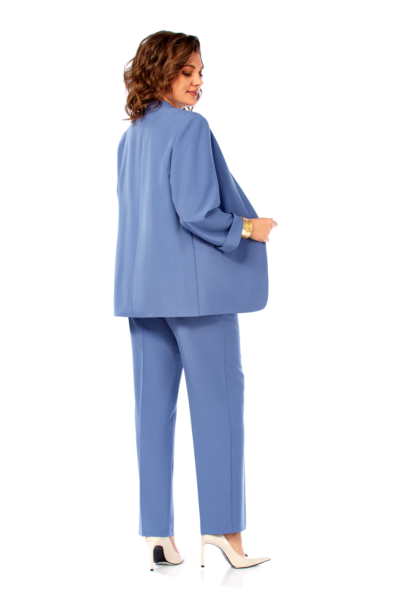 Брючный костюм Ольга Стиль С1000 тройка синий
