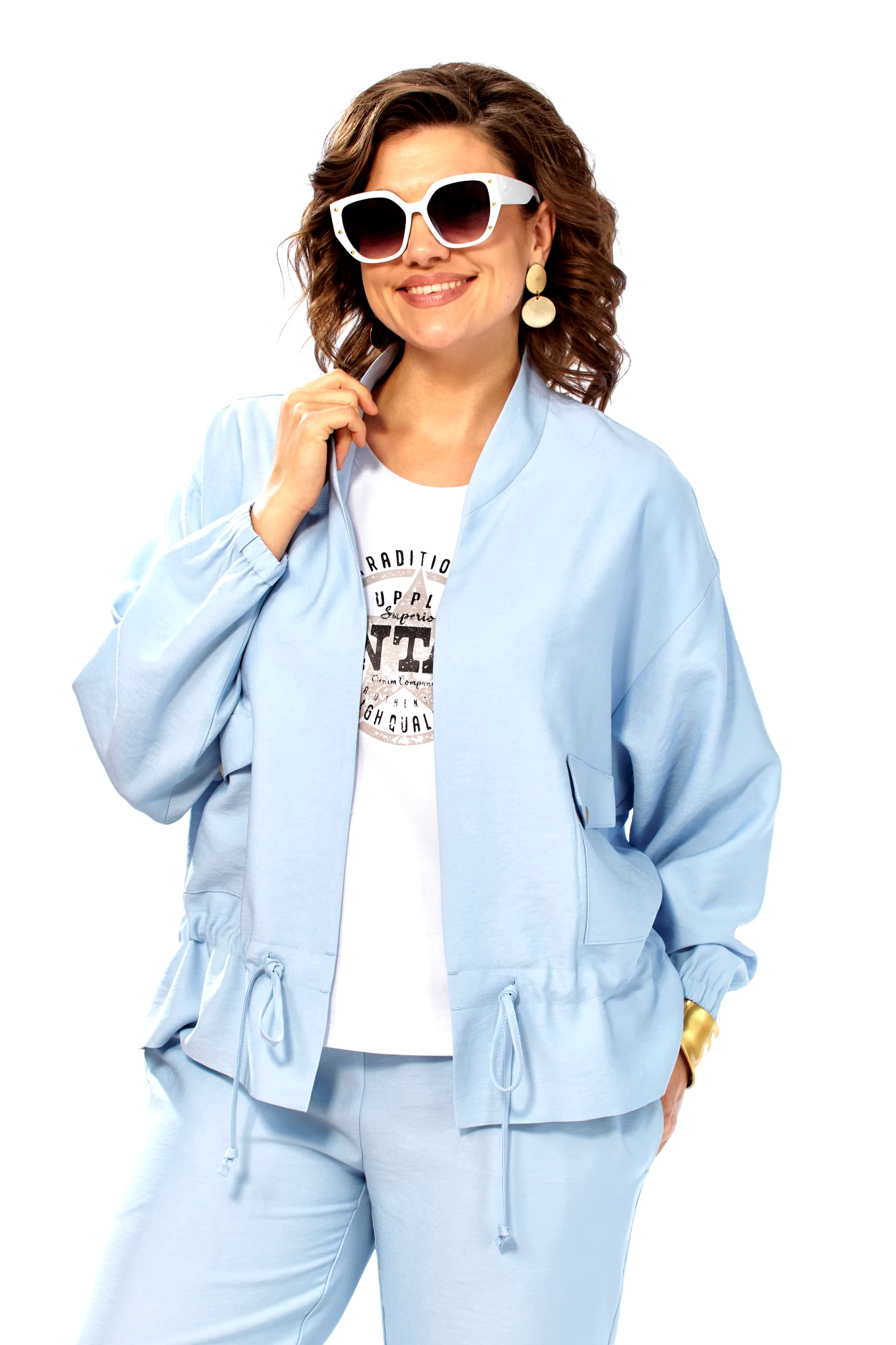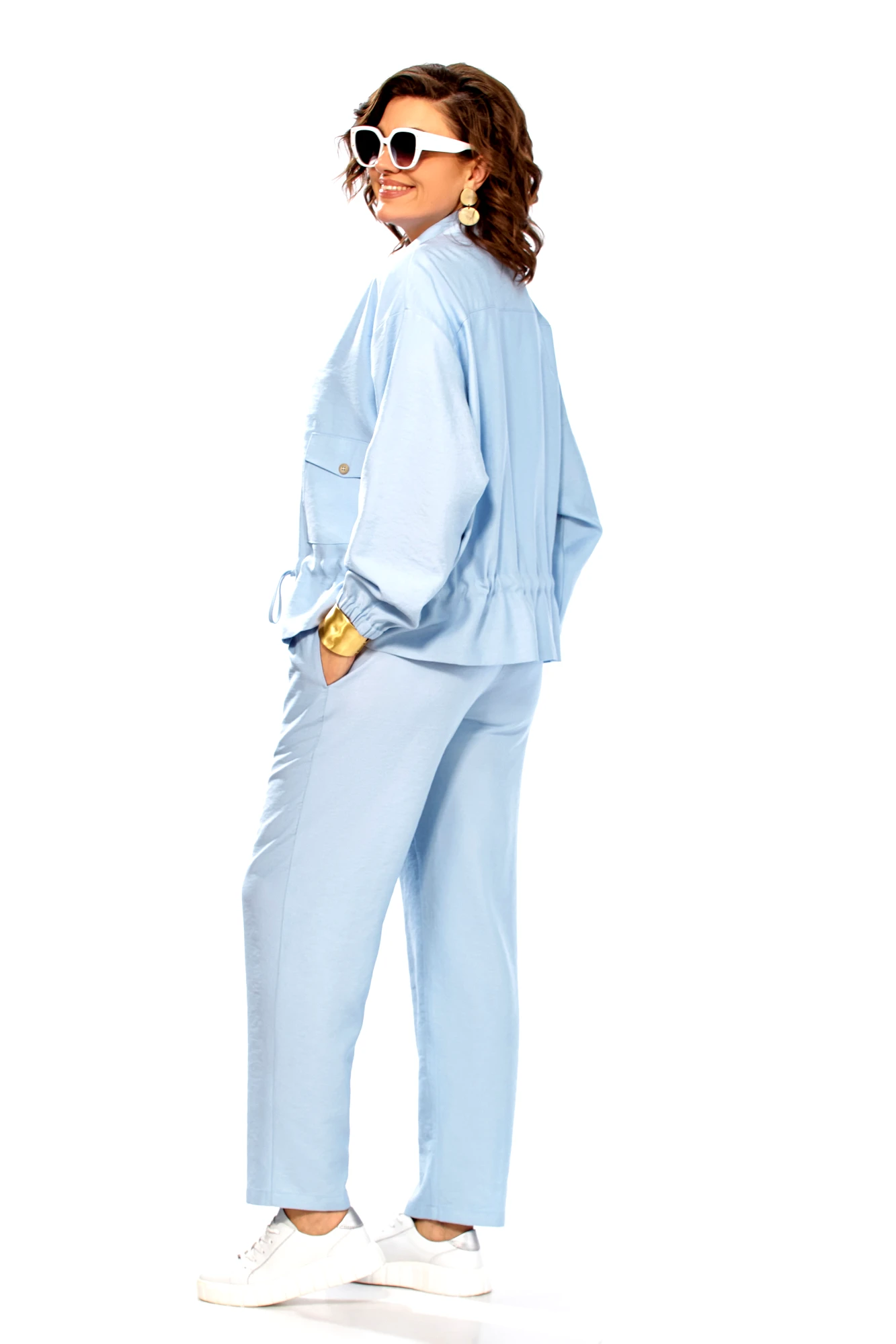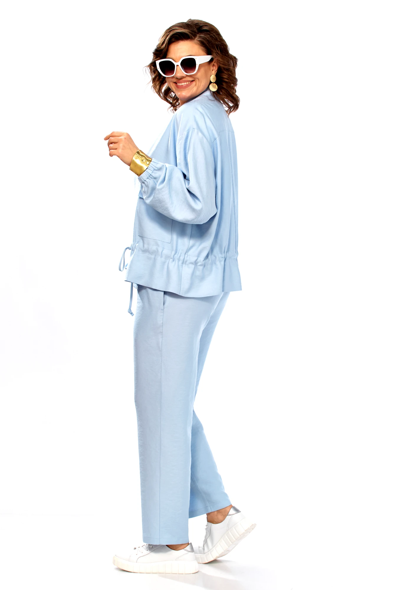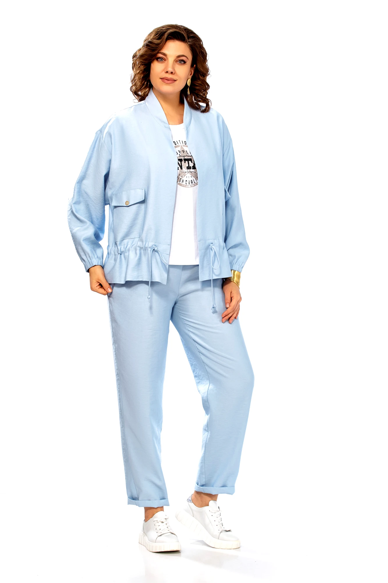 Брючный костюм Ольга Стиль С1011 тройка голубой