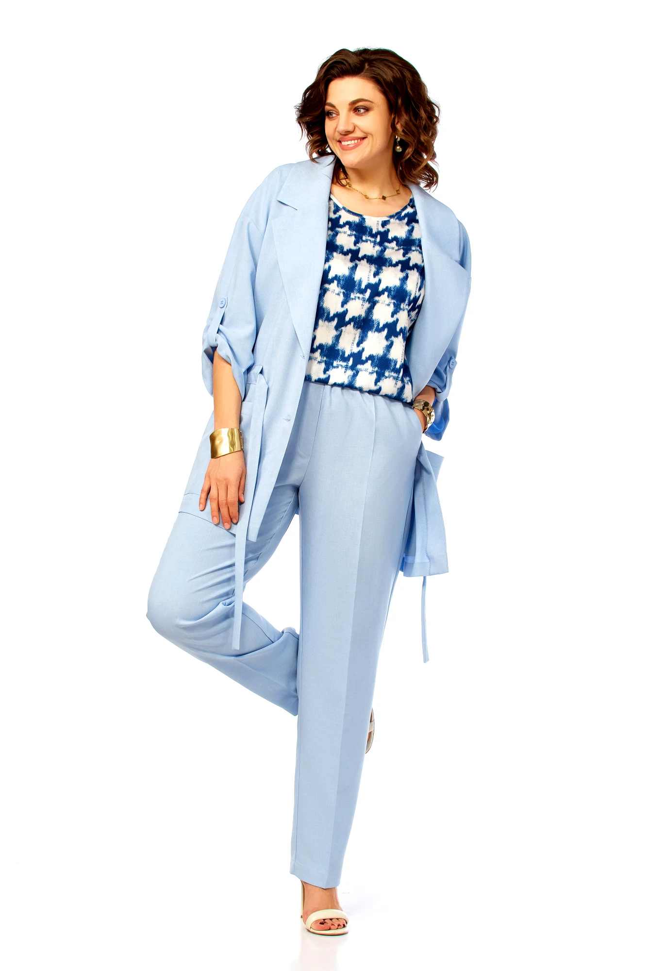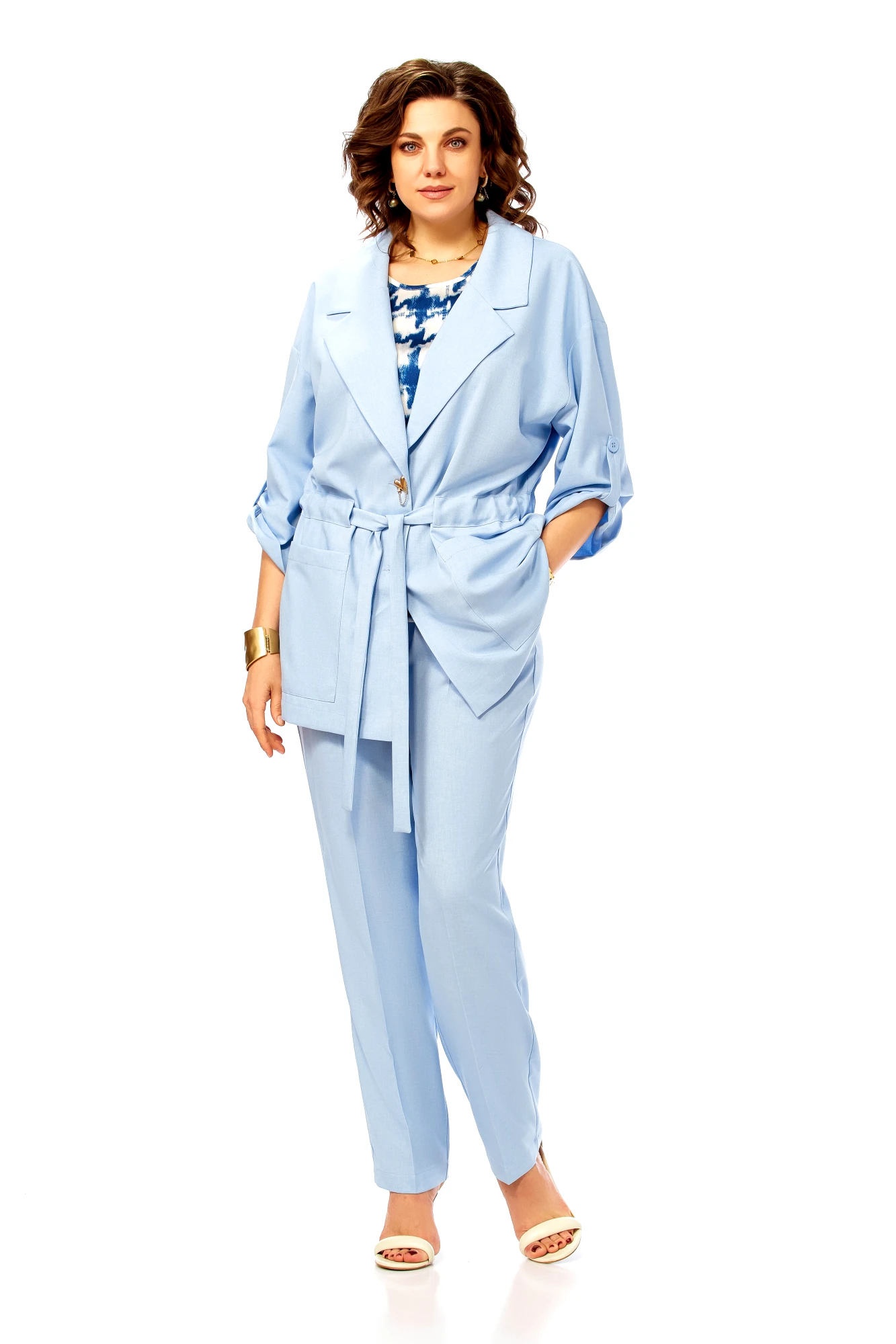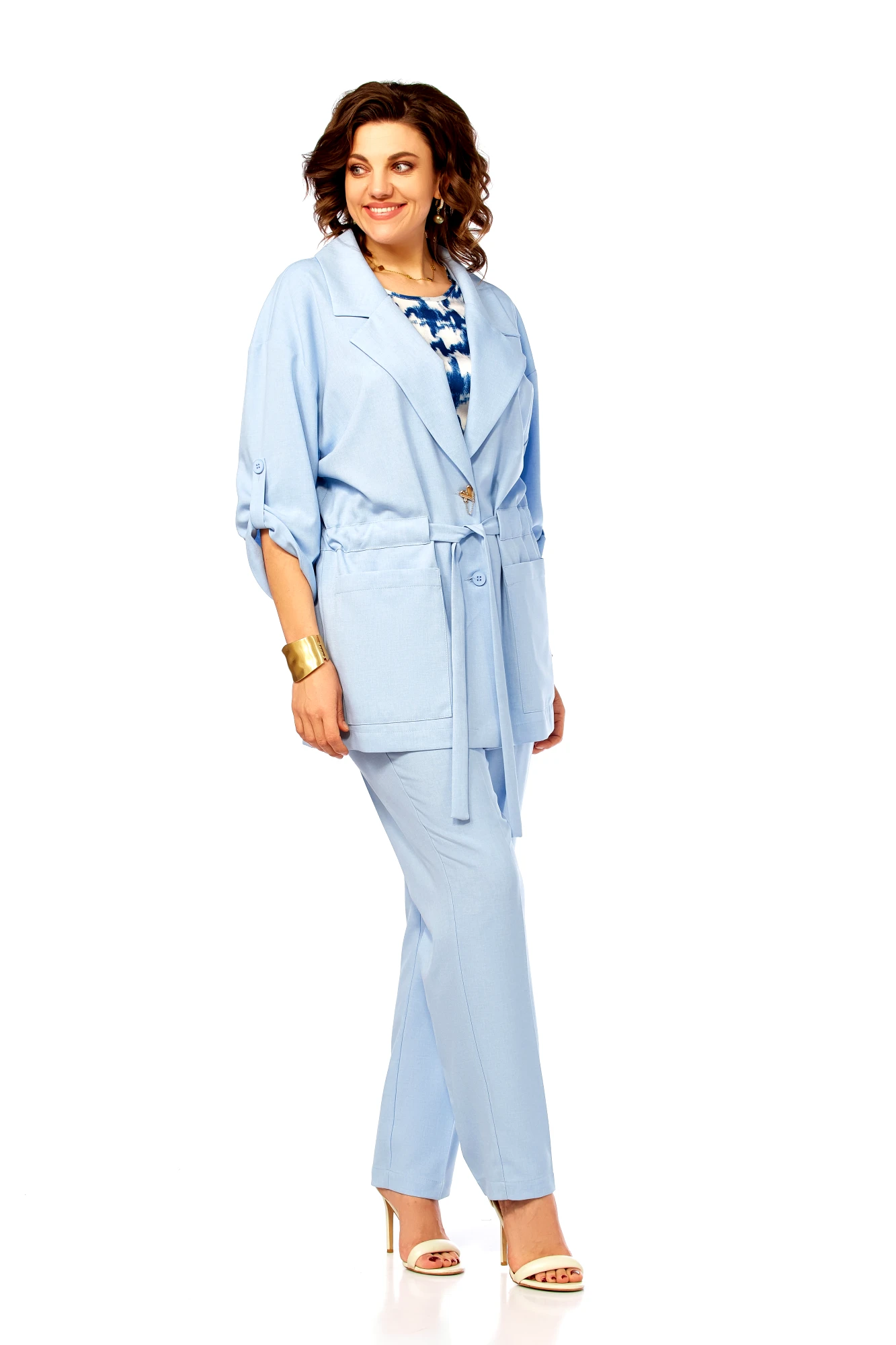 Брючный костюм Ольга Стиль С1012 тройка голубой