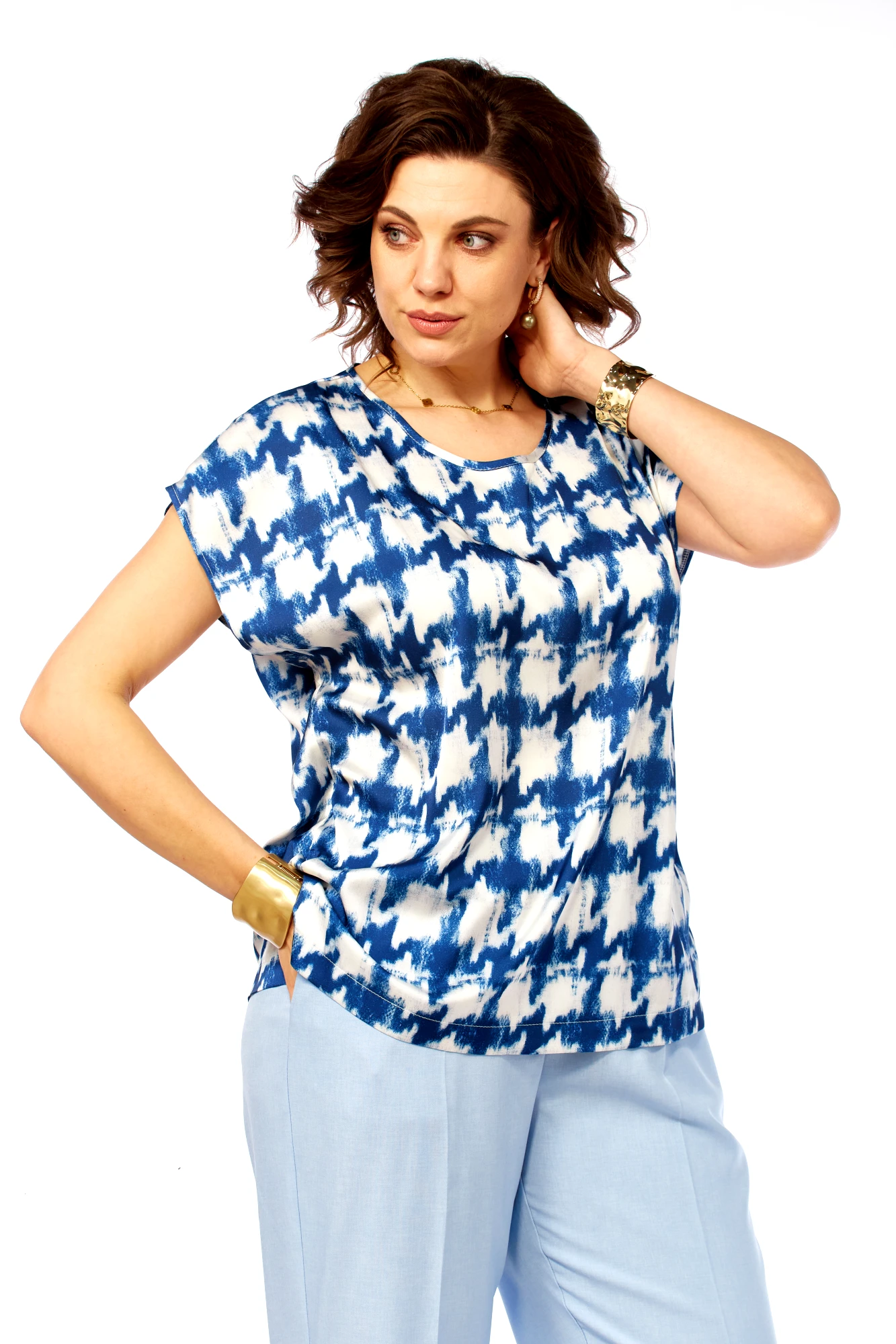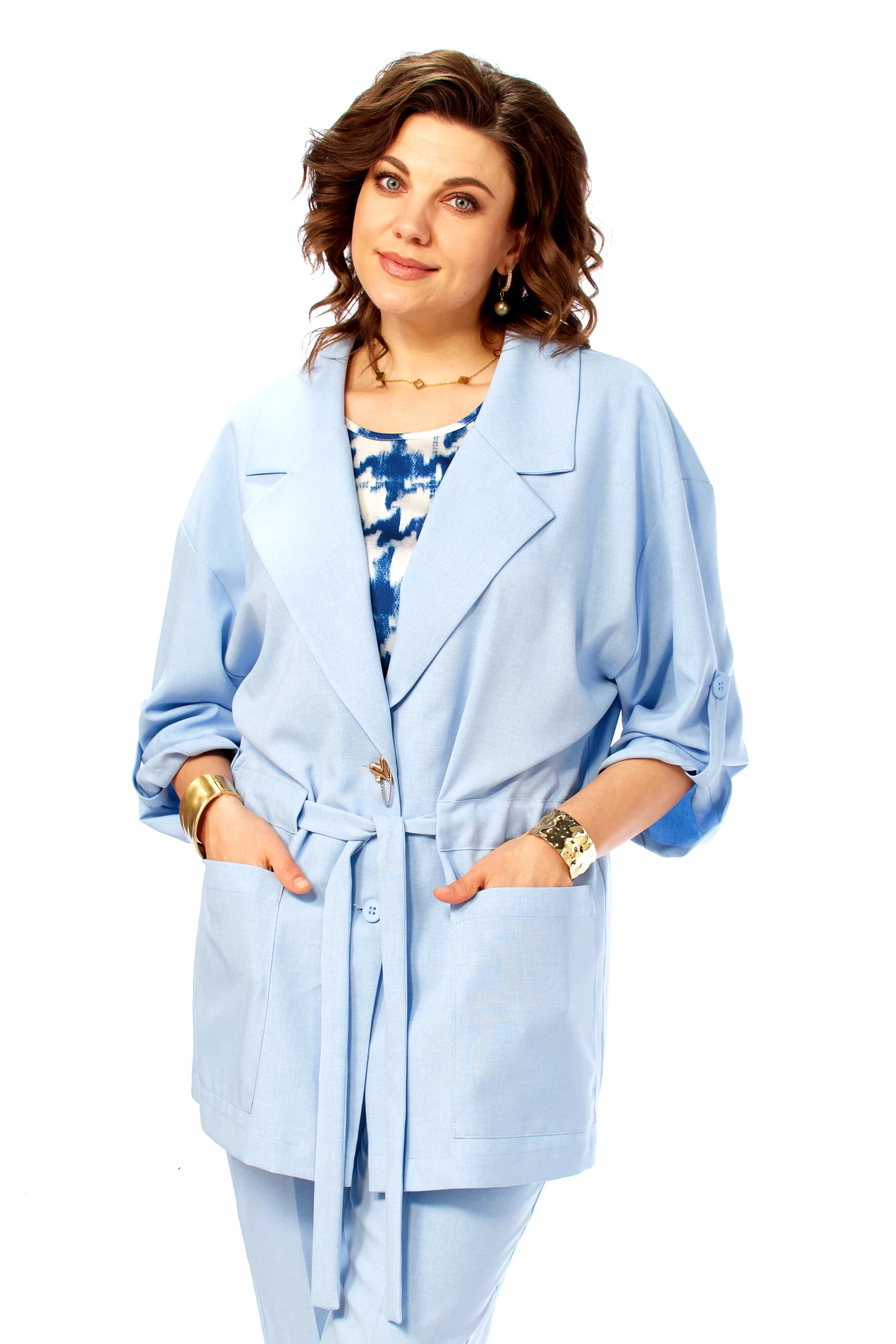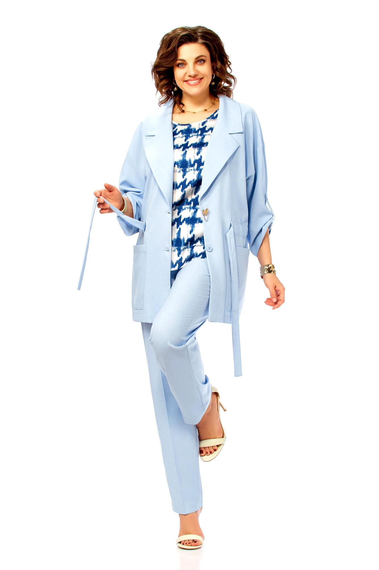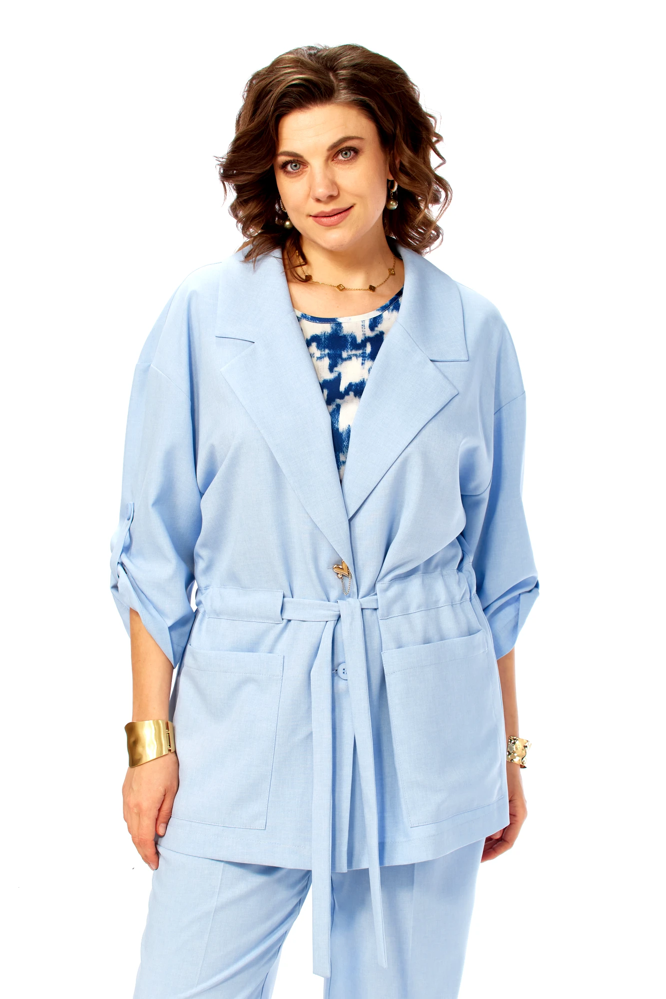Брючный костюм Ольга Стиль С1012 тройка голубой