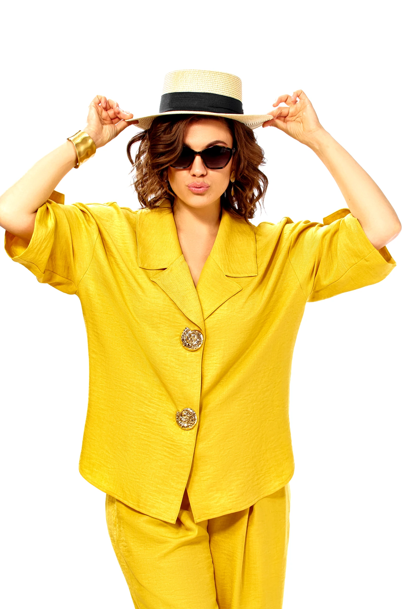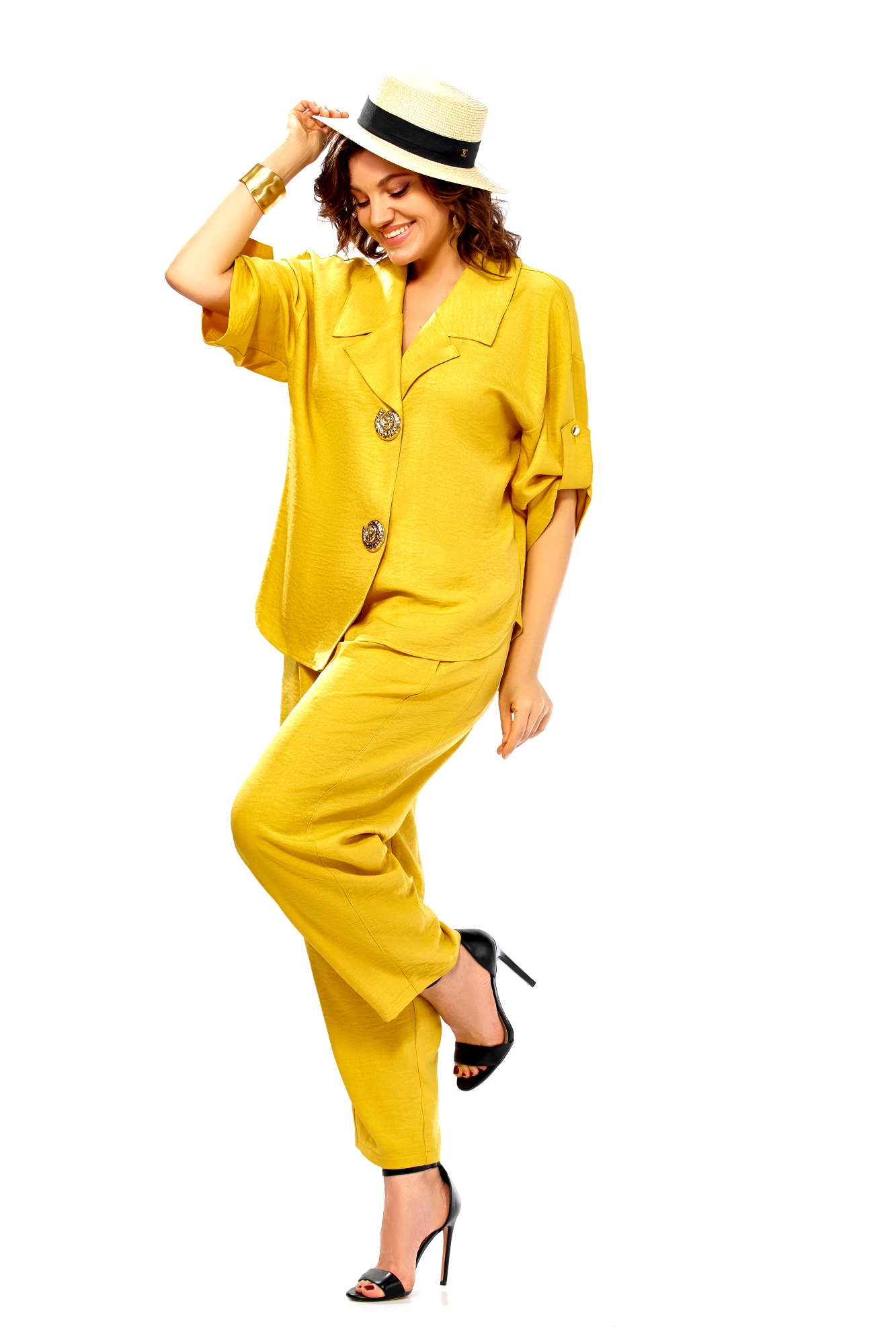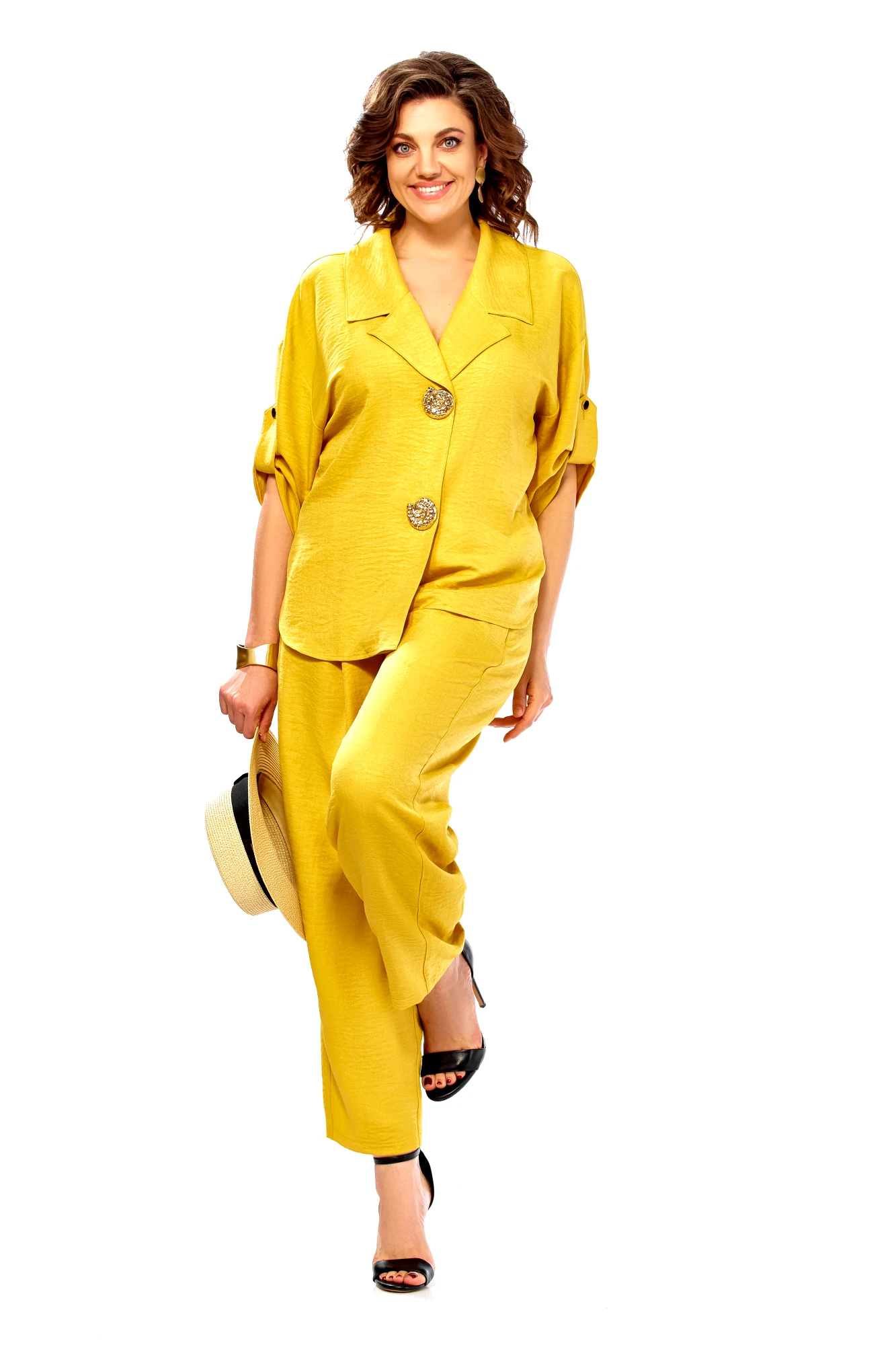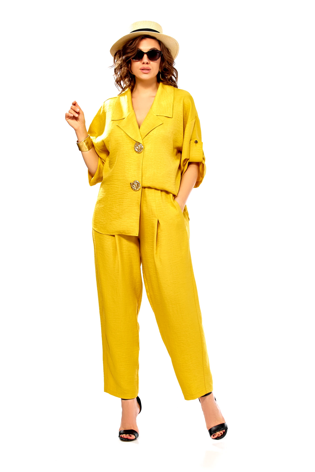 Брючный костюм Ольга Стиль С1013 горчичный