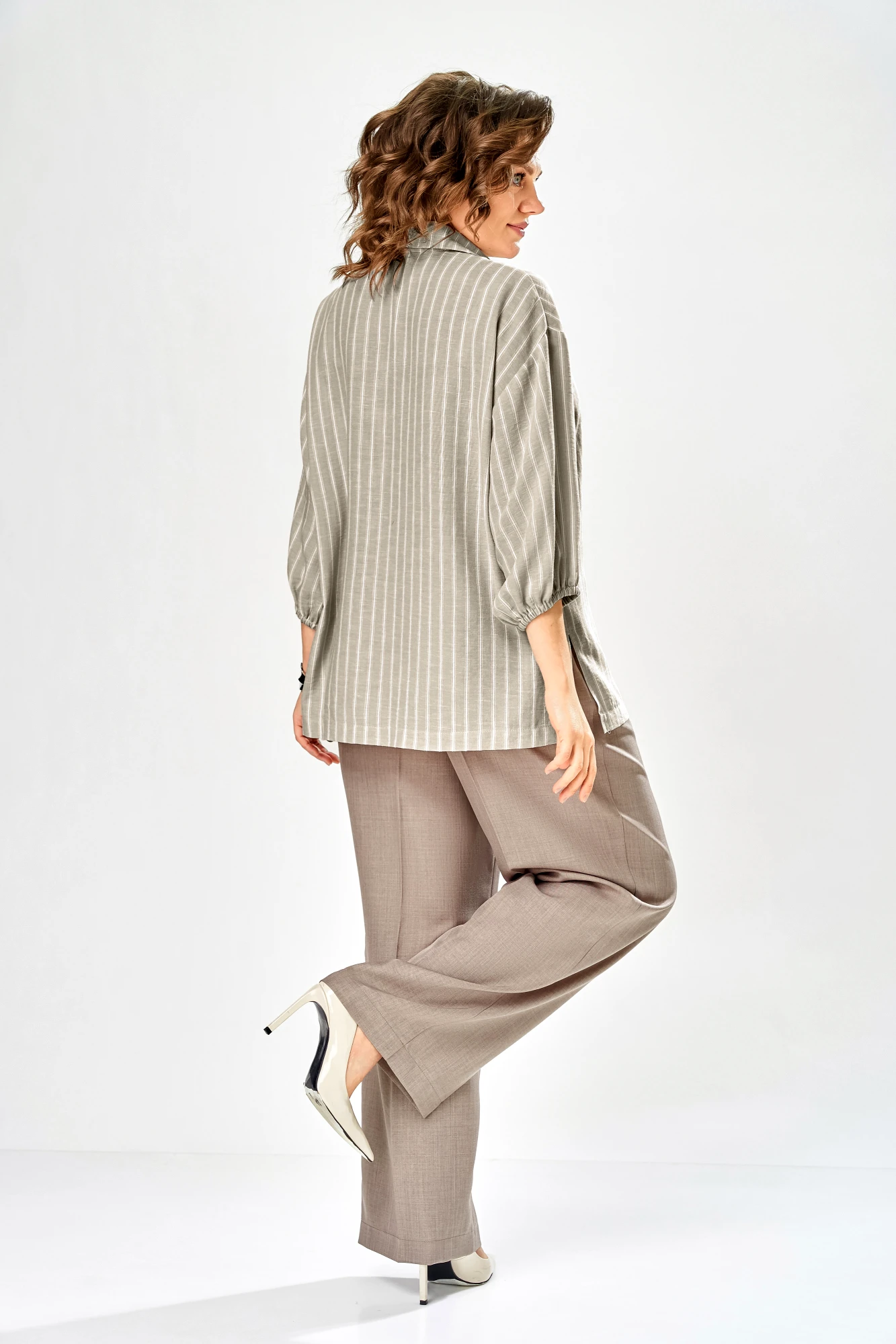 Брючный костюм Ольга Стиль С1017 хаки, коричневый
