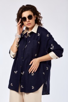 Брючный костюм Ольга Стиль С916 темно-синий, беж с ID товара 421276