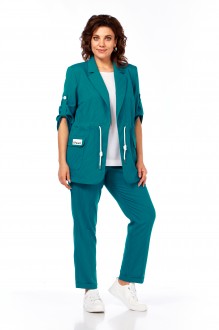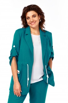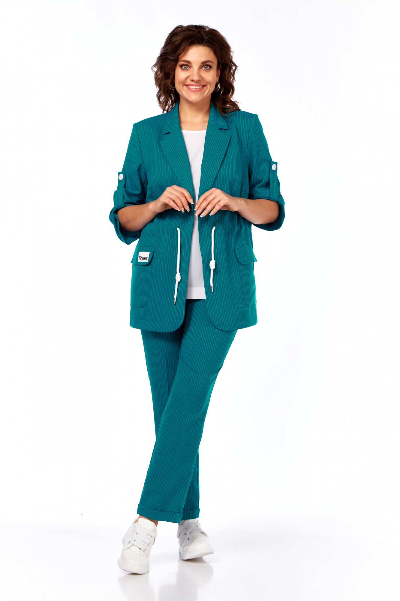 Брючный костюм Ольга Стиль С944 тройка бирюза-полоска