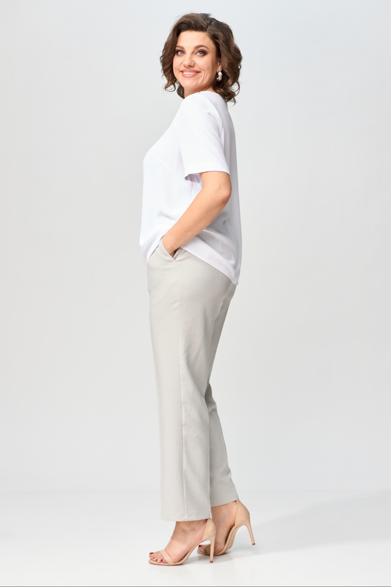 Брючный костюм Орхидея Люкс 1403-3 серый, белый