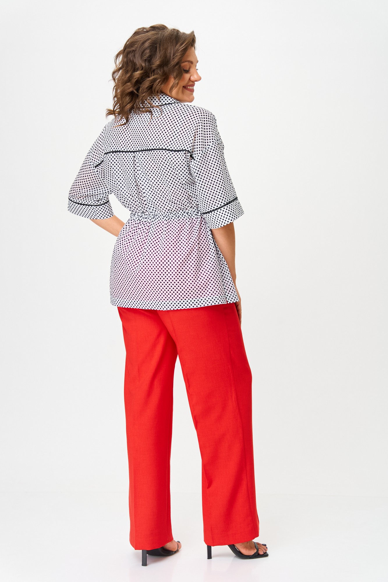 Брючный костюм Орхидея Люкс 1580 черно-белый, красный