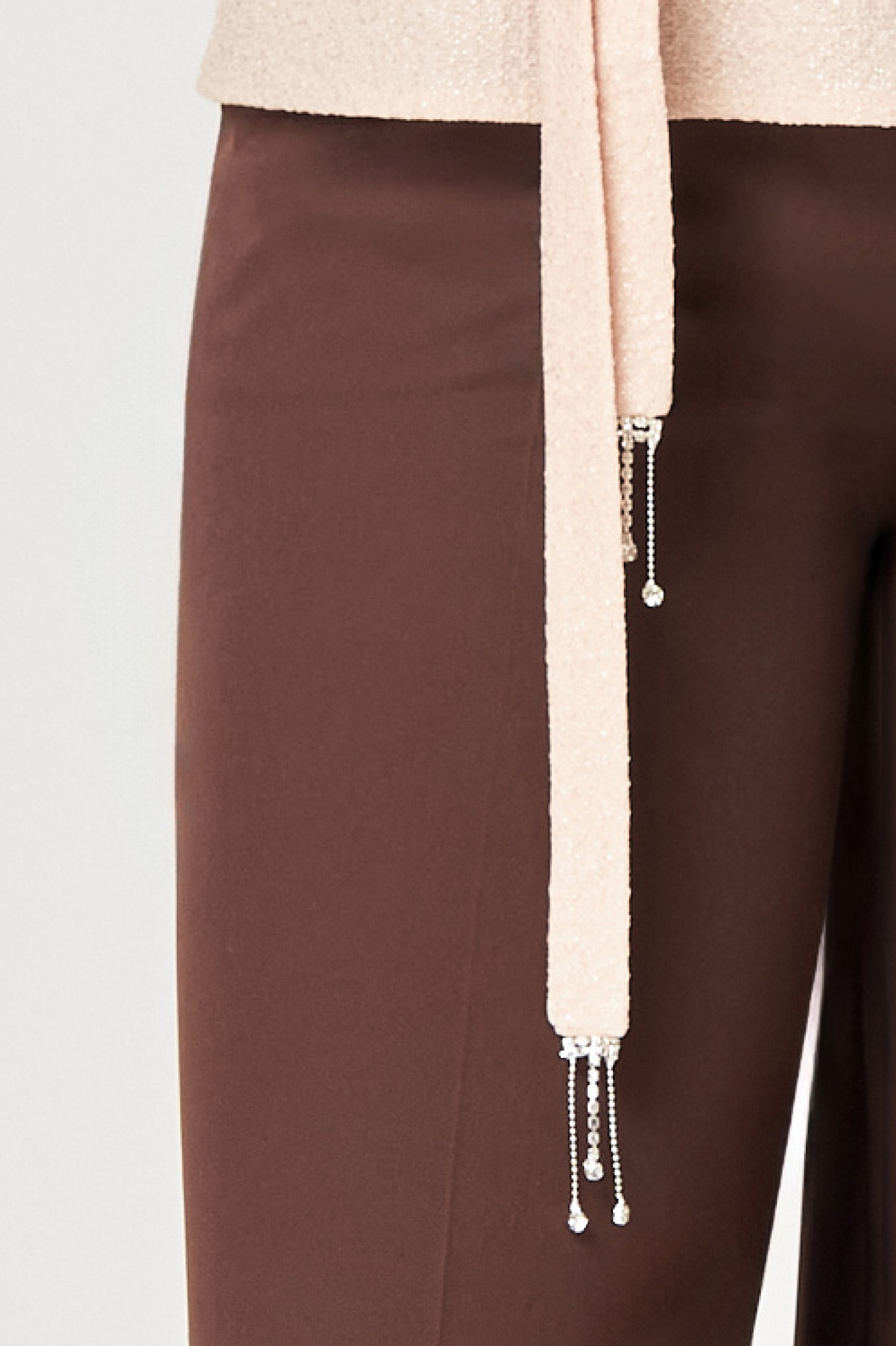 К комплекту прилагается пояс из основной ткани, к концам которого пришита отделочная тесьма со стразами..