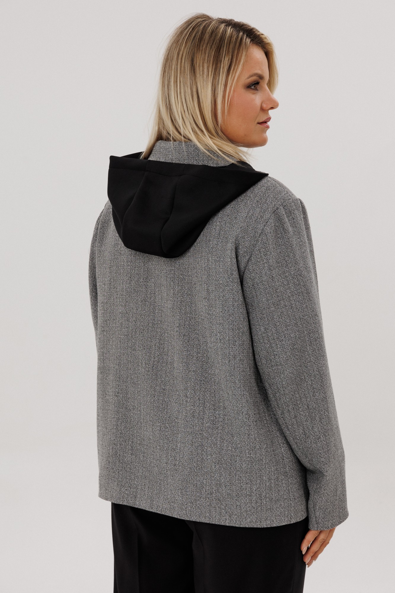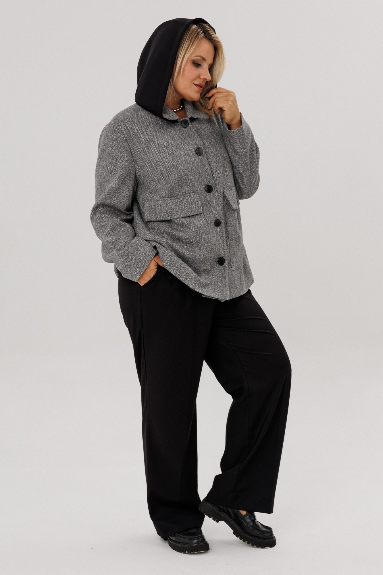 Этот стильный костюм – идеальный синтез классики и современной динамики. Твидовый жакет с эластаном на подкладке прямого кроя выполнен из мягкого твида с дизайном «елочка», с характерной для него структурой. Жакет с рубашечным воротником, на пуговицах. Съемный капюшон контрастного цвета добавляет образу актуальности, и возможность стилизовать образ по любому случаю. Брюки на резинке прямого кроя с высокой талией из трикотажа, что создает идеально выверенные пропорции и визуально удлиняет ноги. Для удобства и функциональности в боковых швах карманы- «хулиганы». Этот костюм –готовое решение для модного офиса, встречи с подругами, проулки по городу или поездки за город.