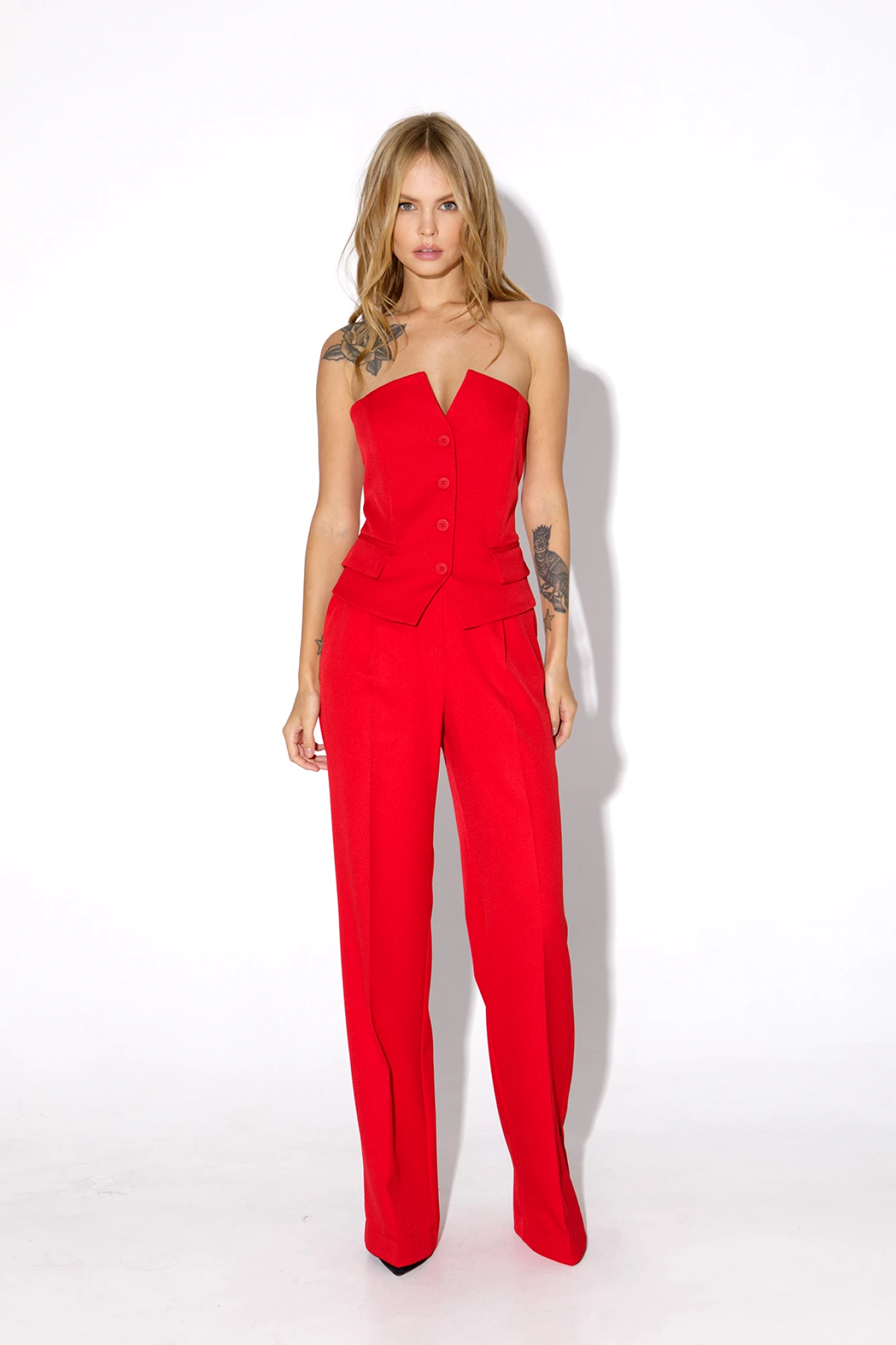 Брючный костюм PiRS 5026 тройка красный