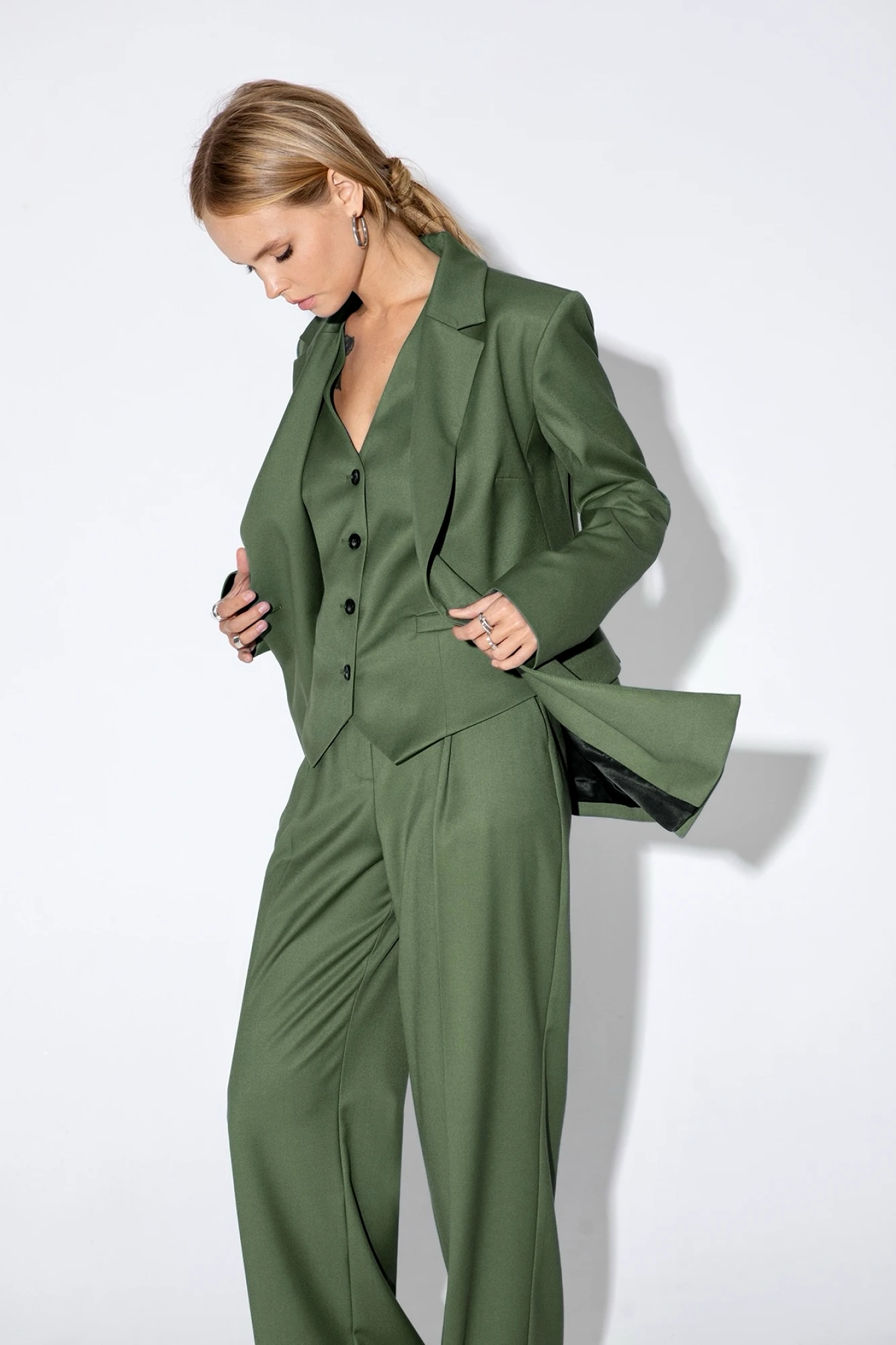 Брючный костюм PiRS 5031 тройка зеленый