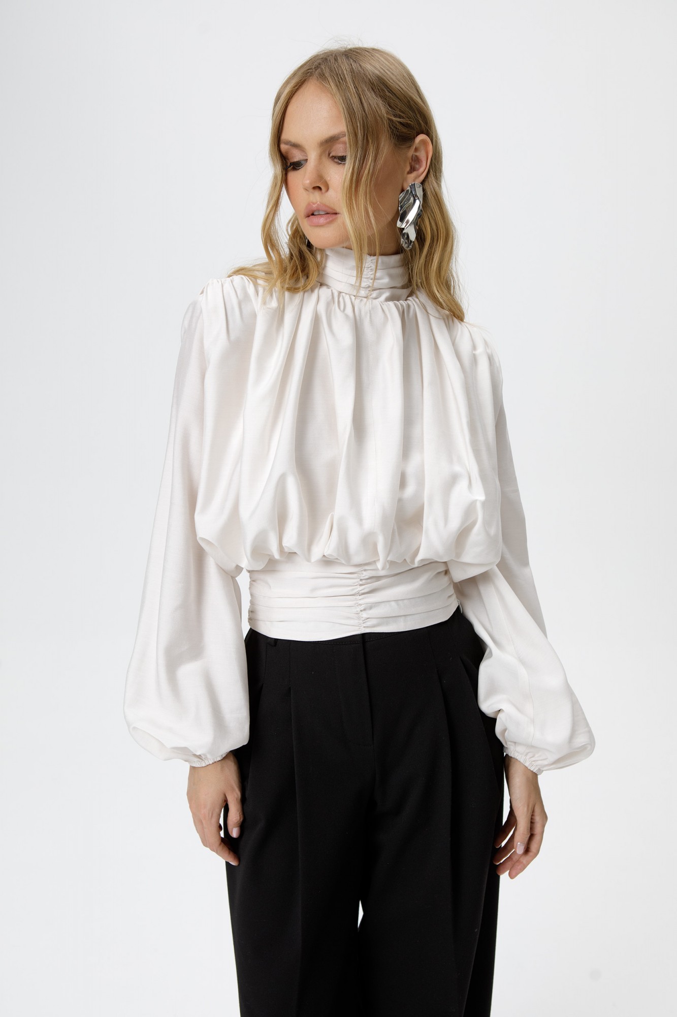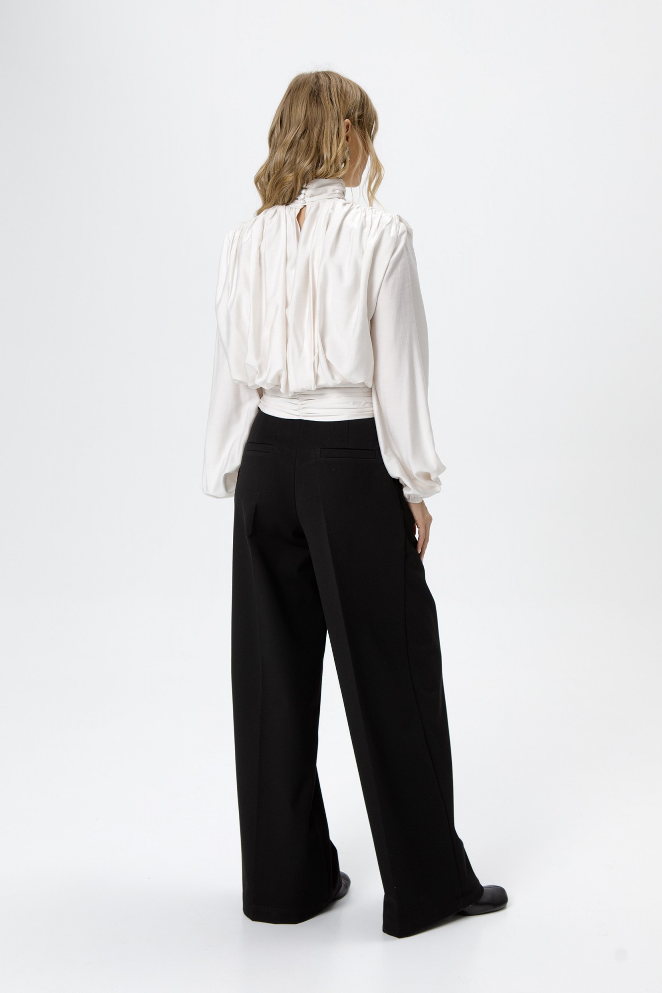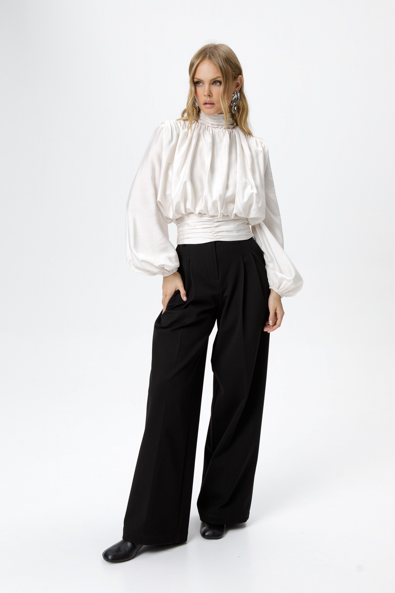 Комплект-двойка из укороченной блузы и широких брюк-палаццо.