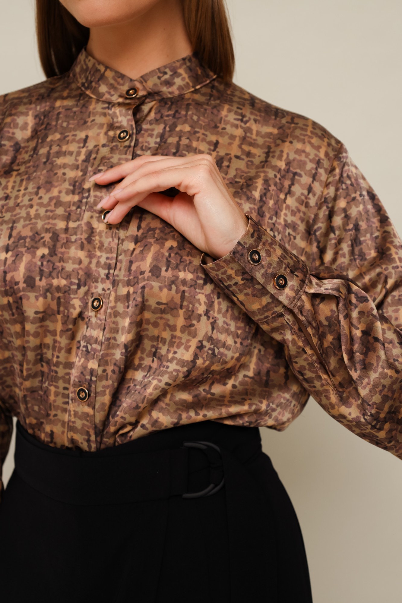 Блуза - ПЭ 100%, Брюки- ПЭ 78%, Вискоза 18%, Спандекс 4%.