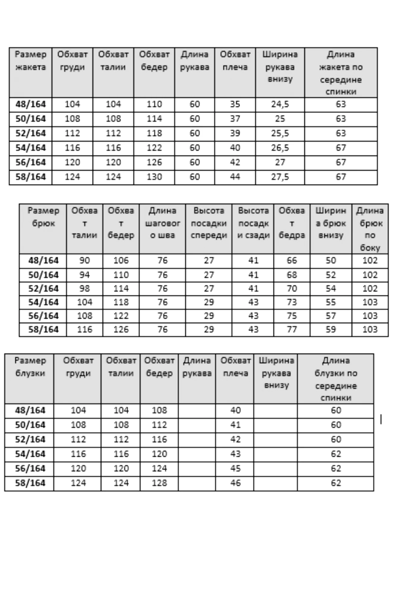 вискоза 65% полиэстер 30% лайкра5%(жакет,брюки) полиэстер 98% спандекс2%(блуза)