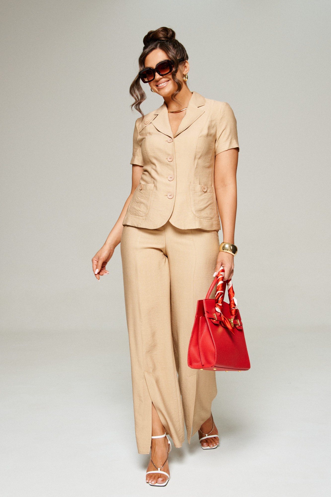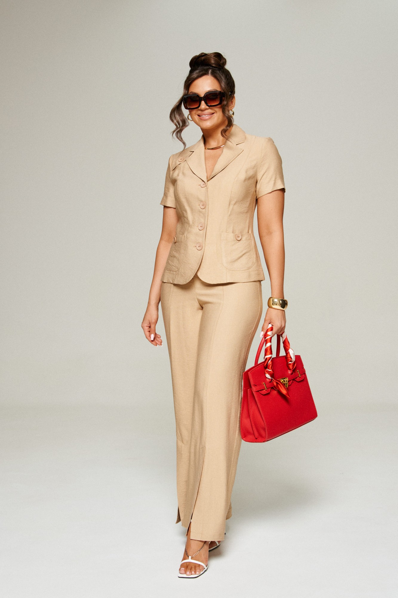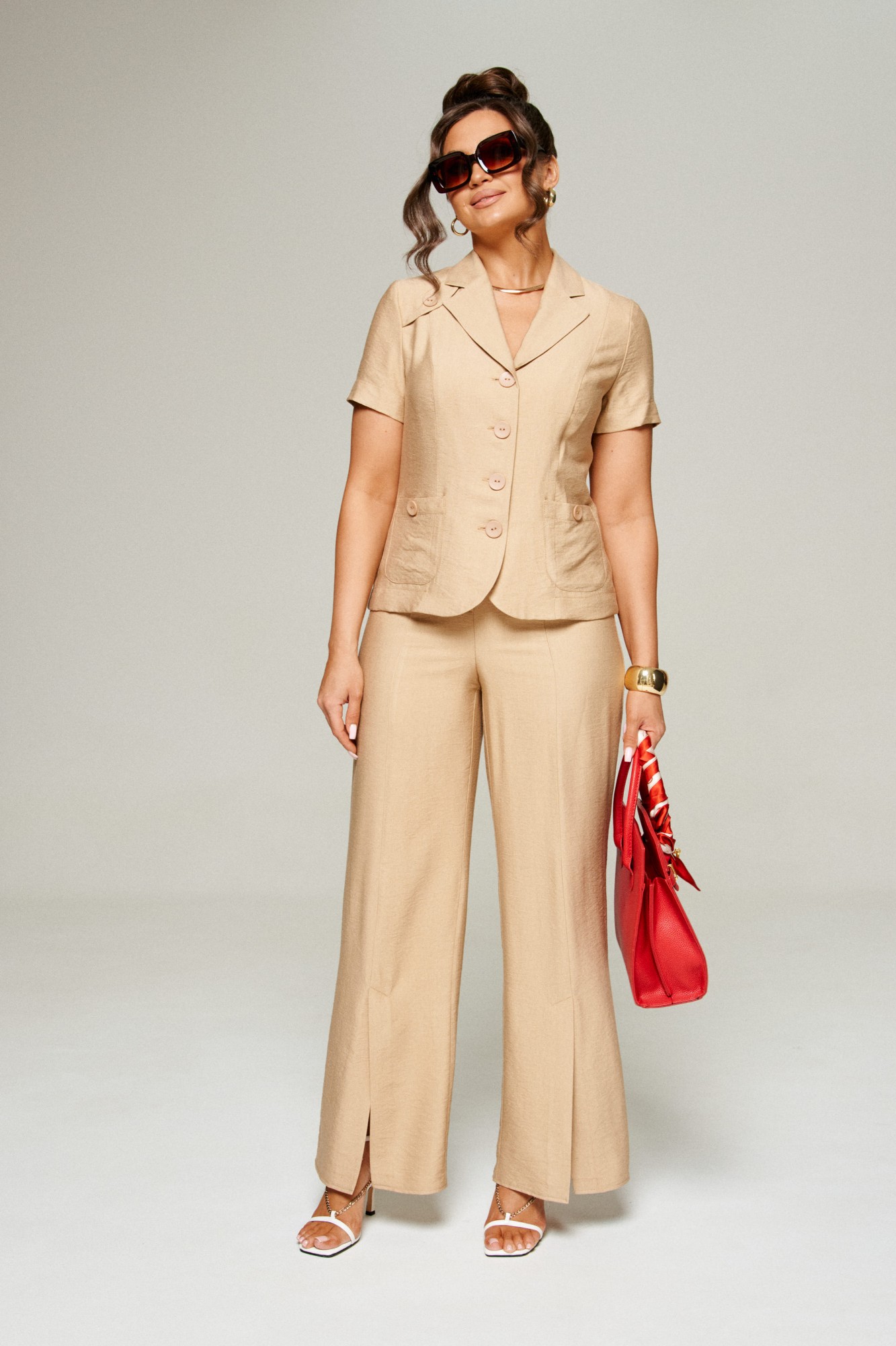 Брючный костюм Beautiful&Free 6312 двойка песочный