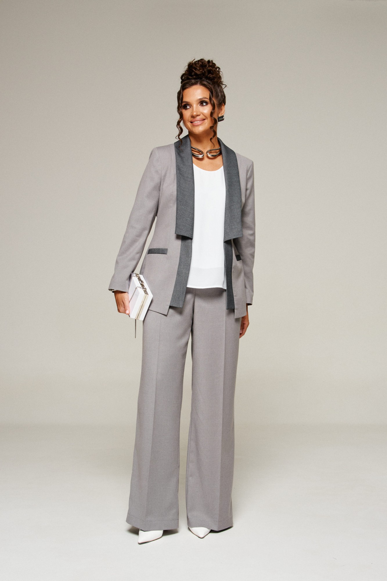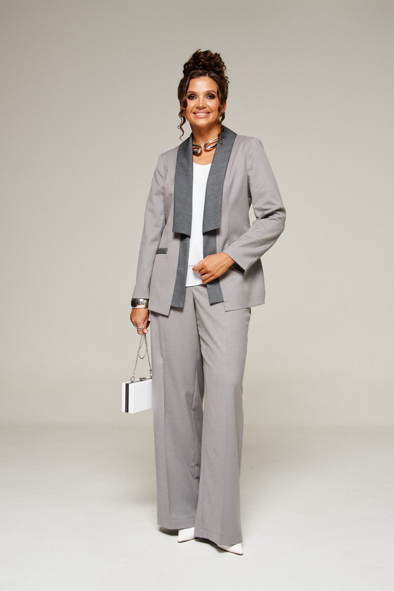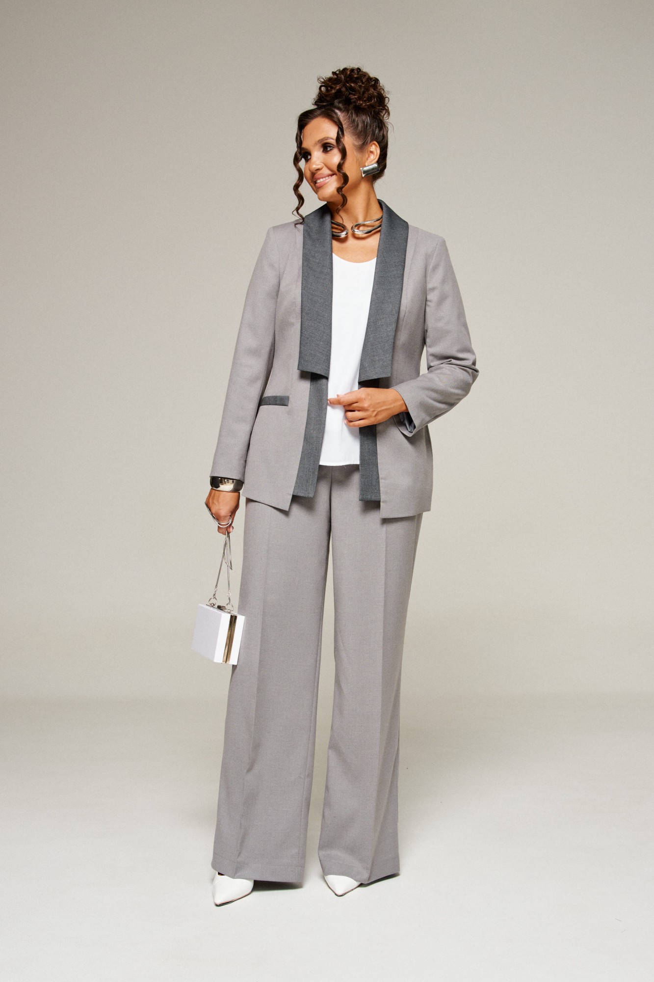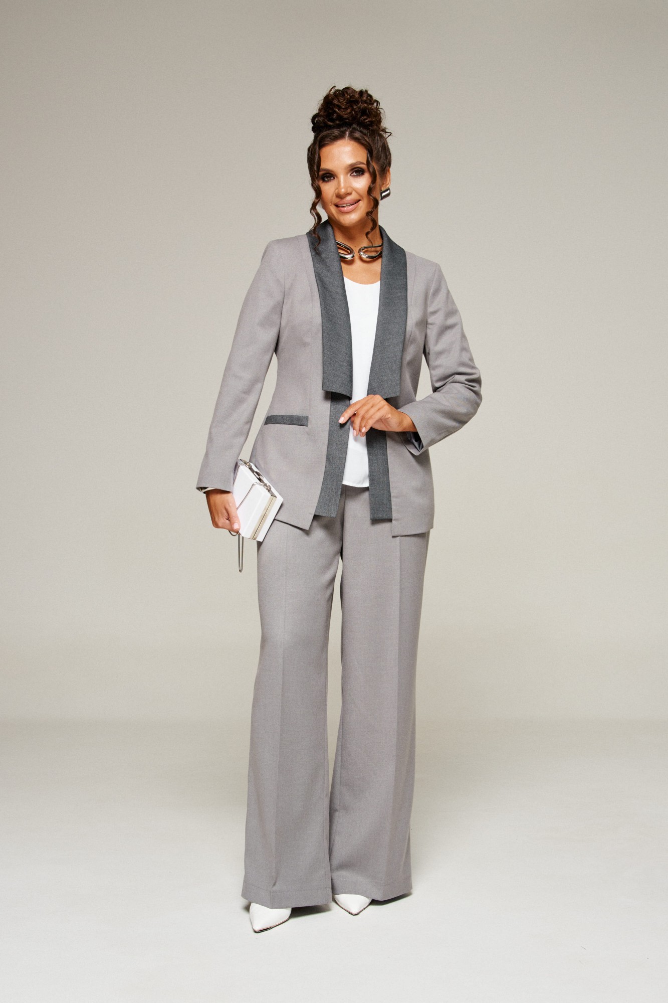 Брючный костюм Beautiful&Free 6376 тройка серый