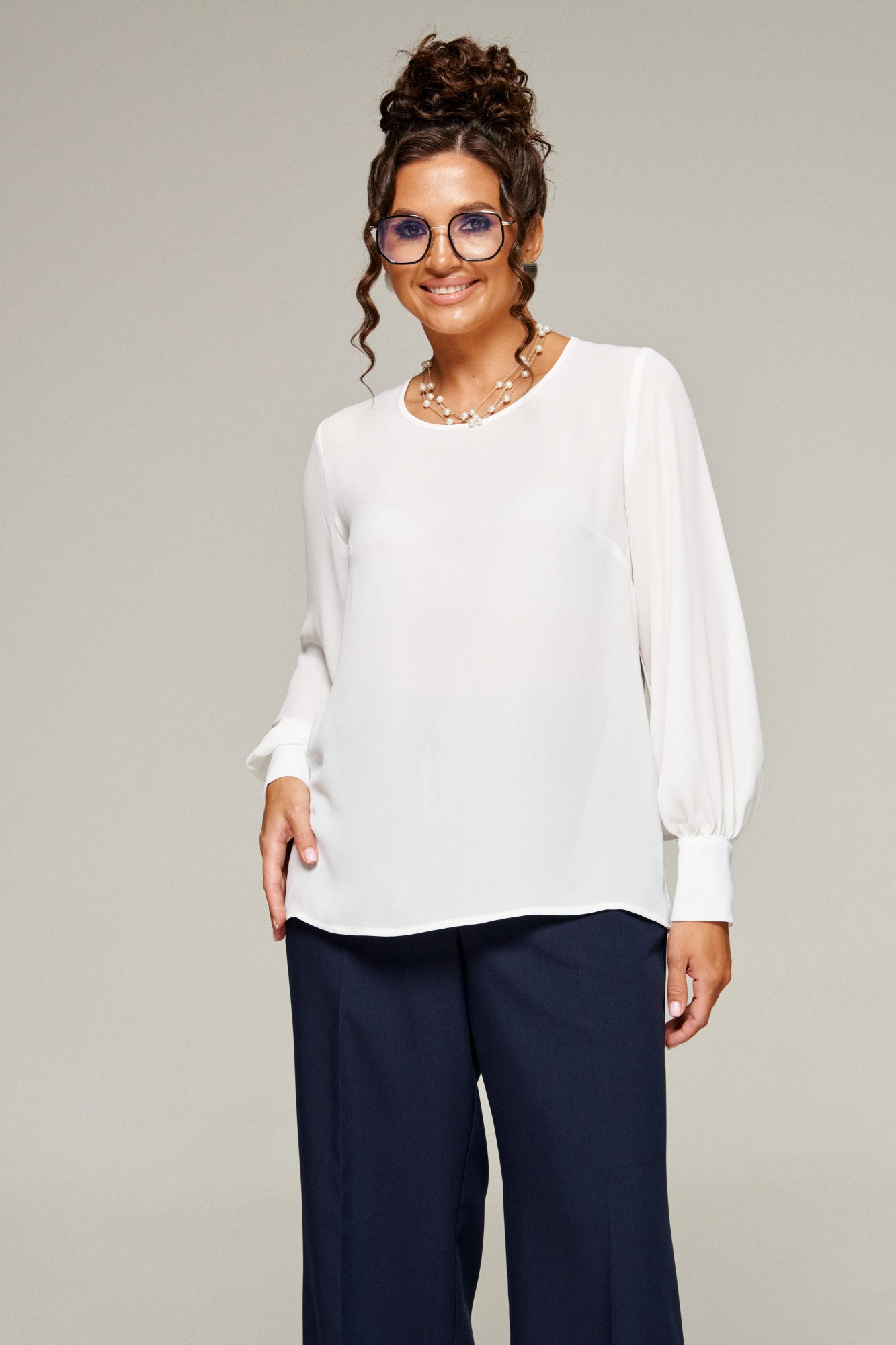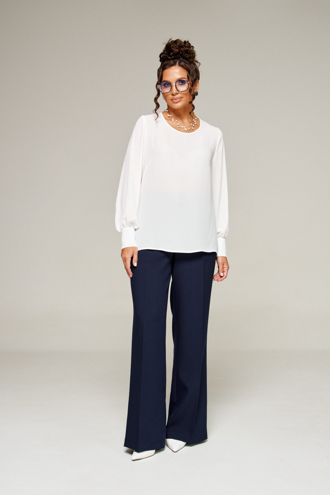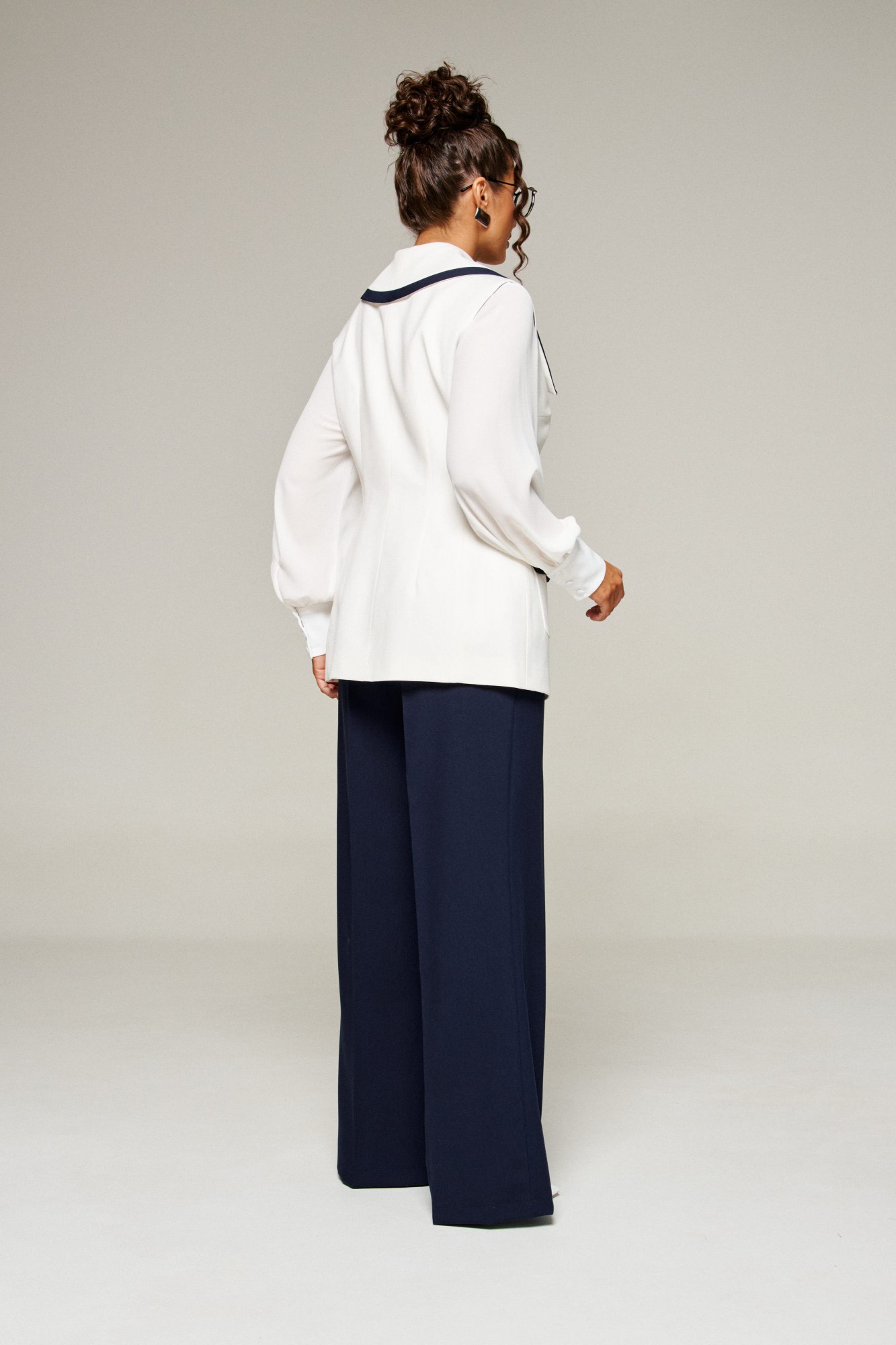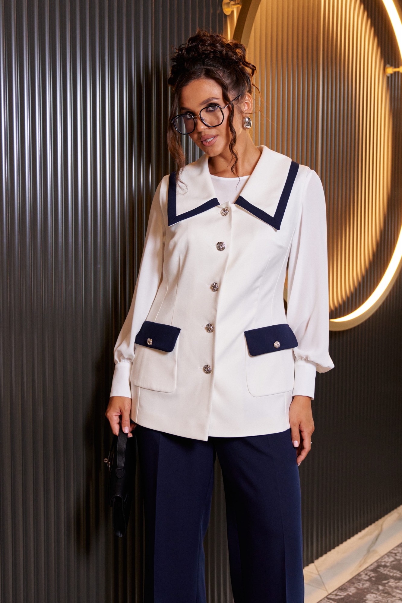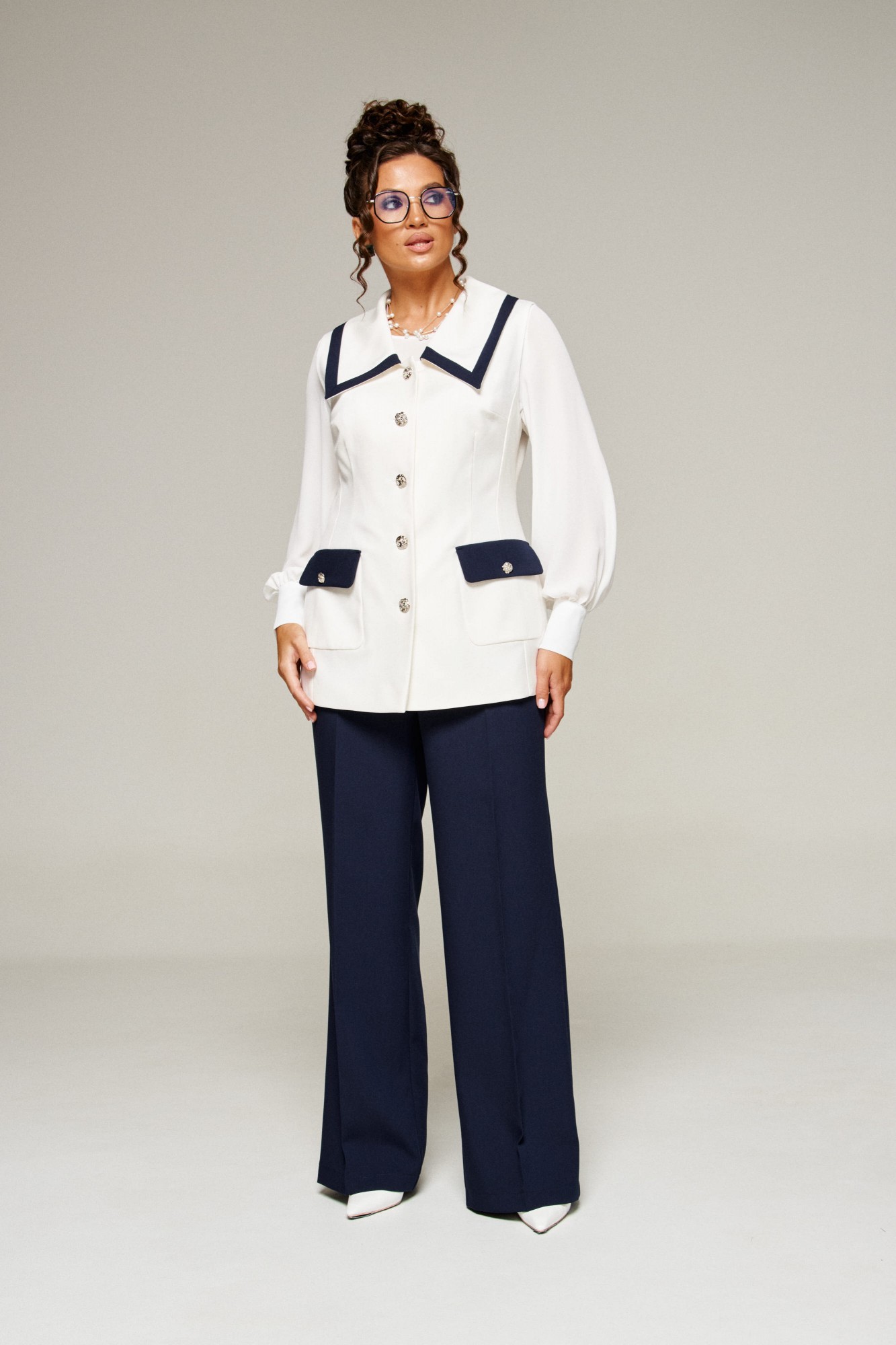 Брючный костюм Beautiful&Free 6380 тройка молочный, синий