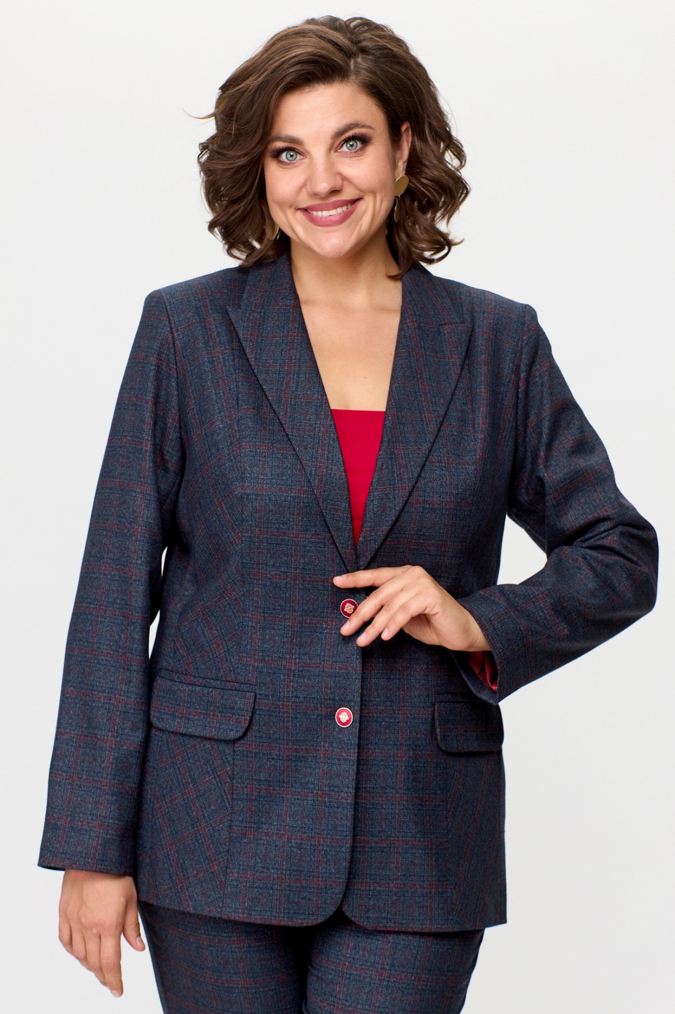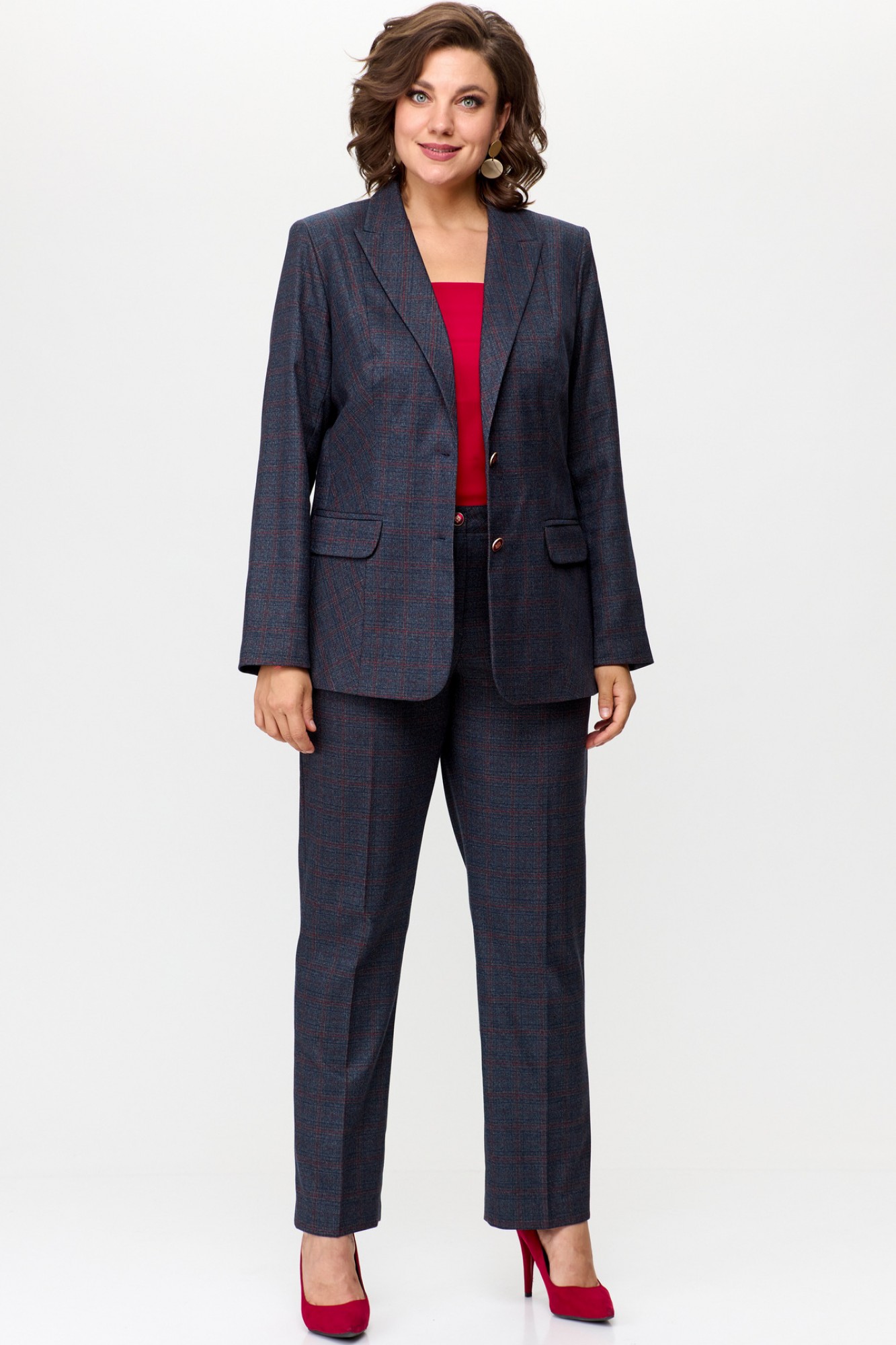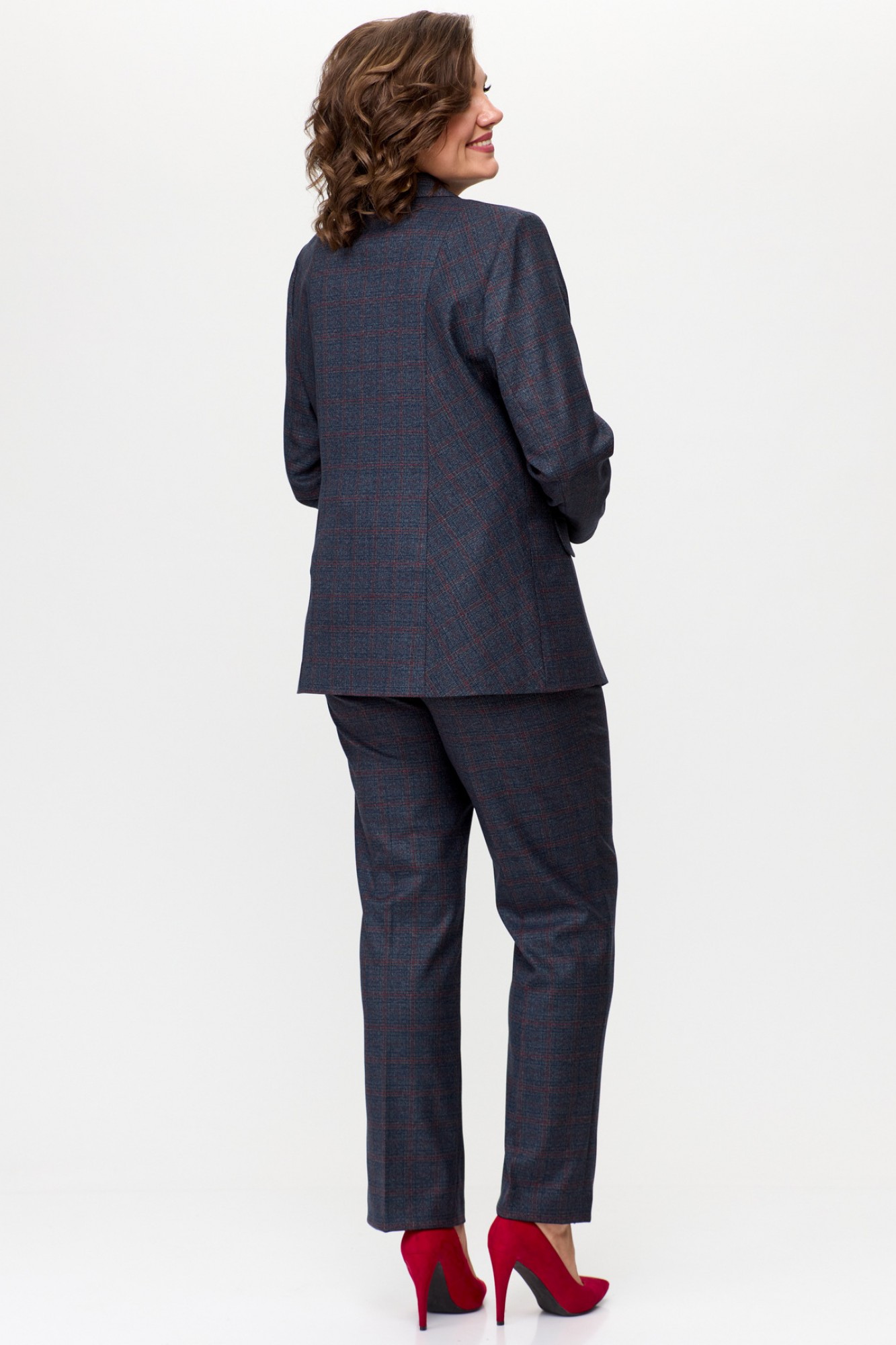 Брючный костюм БелЭльСтиль 203+596 сине-красная клетка с ID товара 387272
