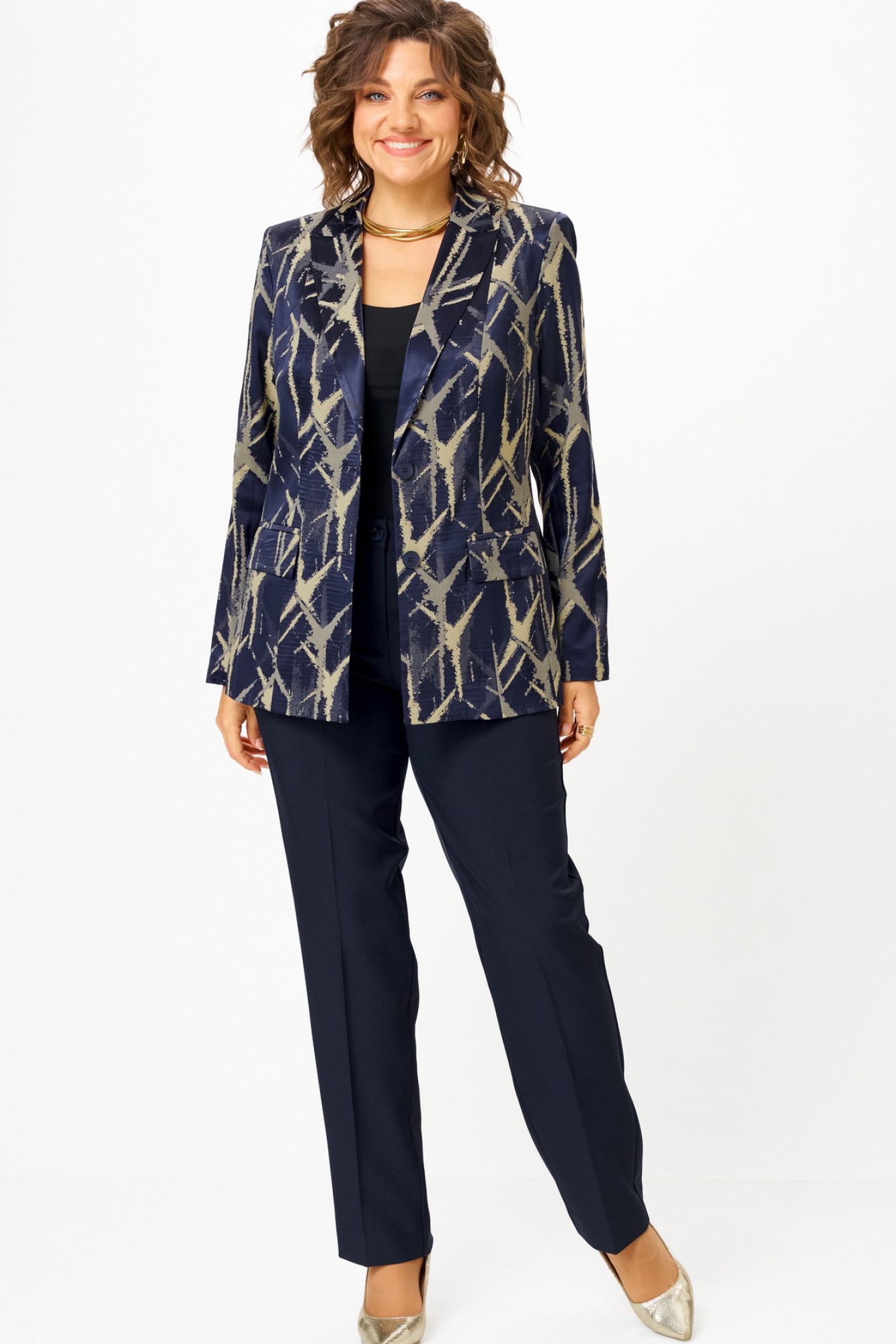 Брючный костюм БелЭльСтиль 412+596 синий+золото