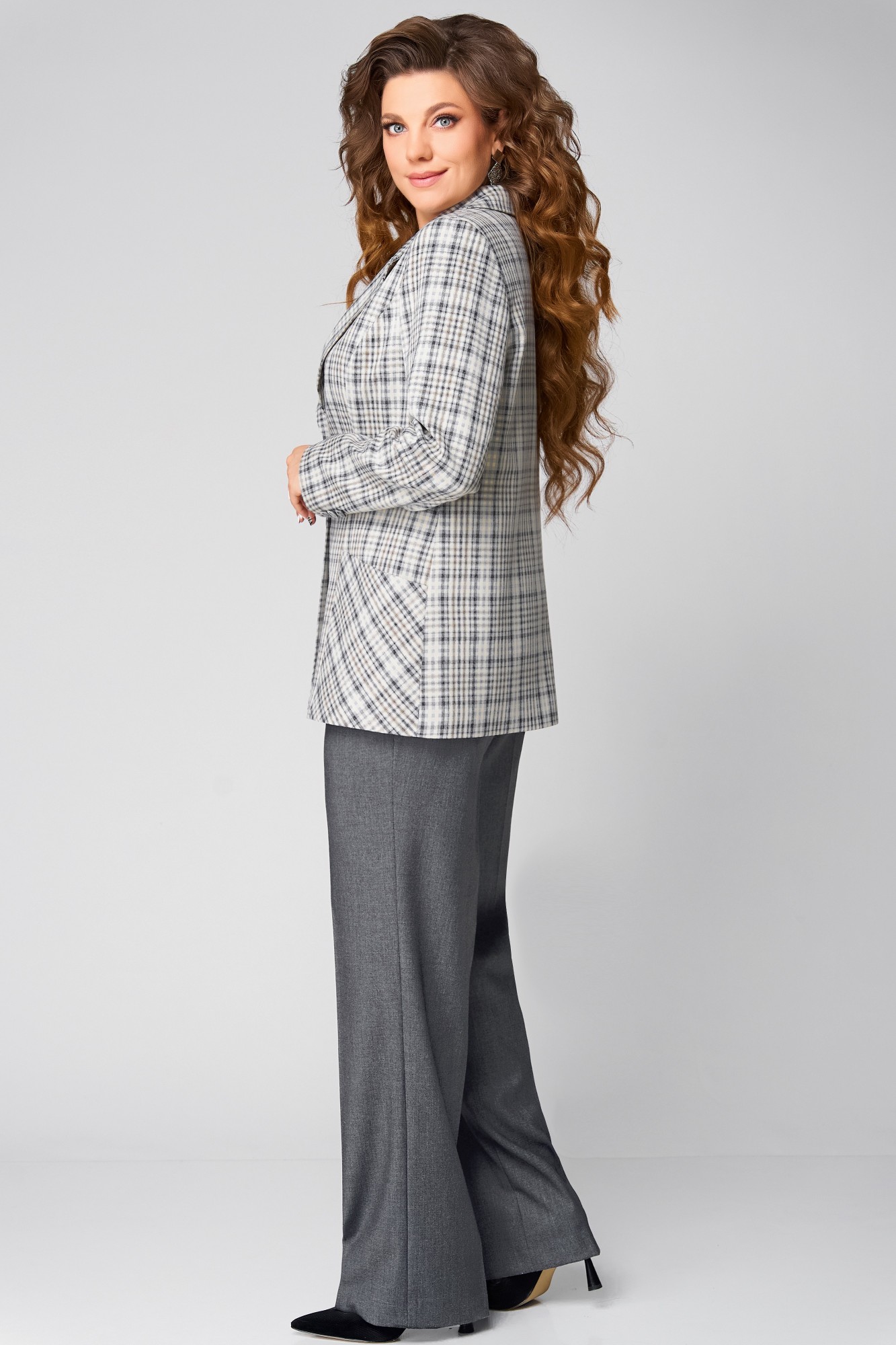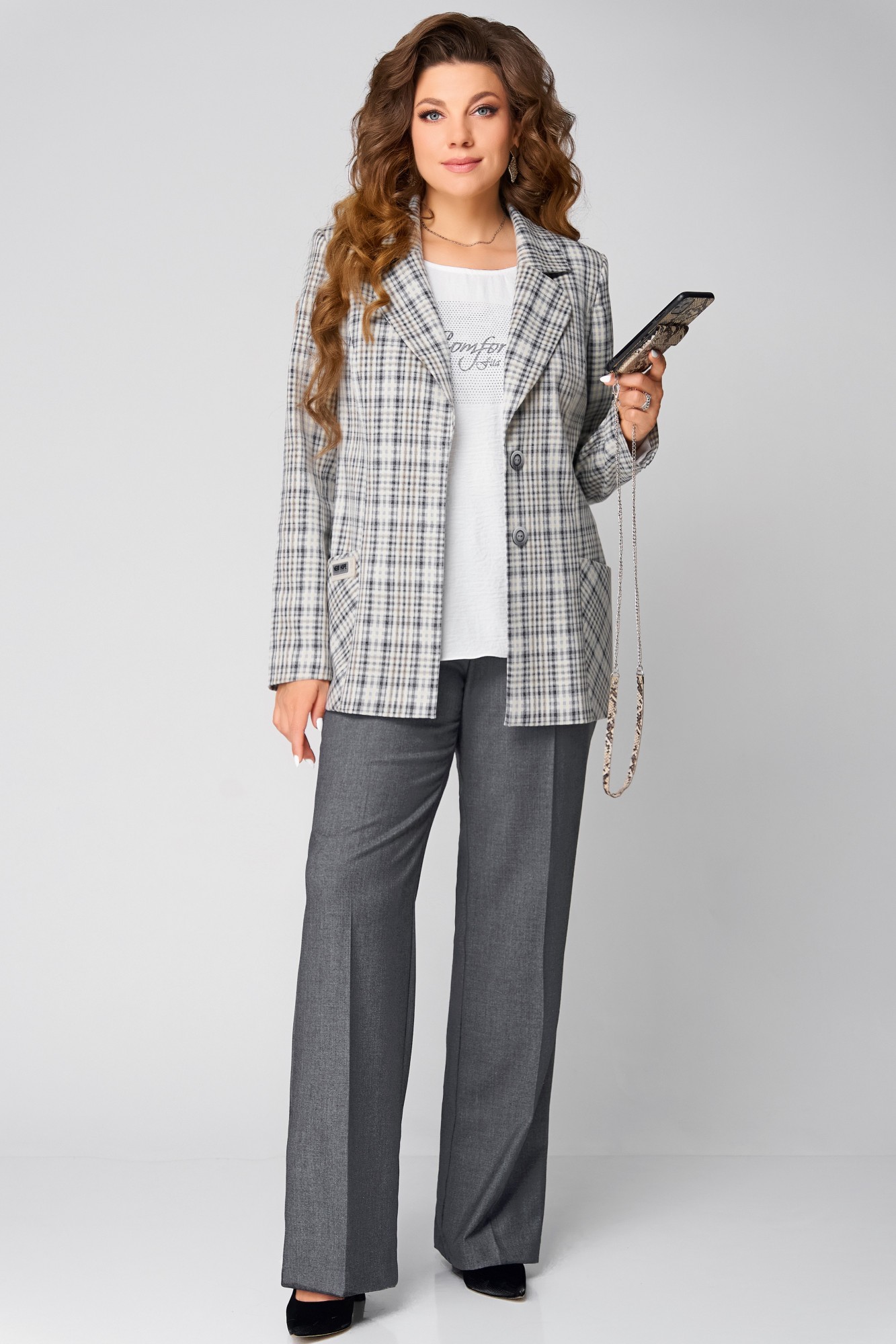 жакет: 60% вискоза, 36% полиамид 4% спандекс; брюки и блузка: 70% полиэстер, 30% вискоза.
