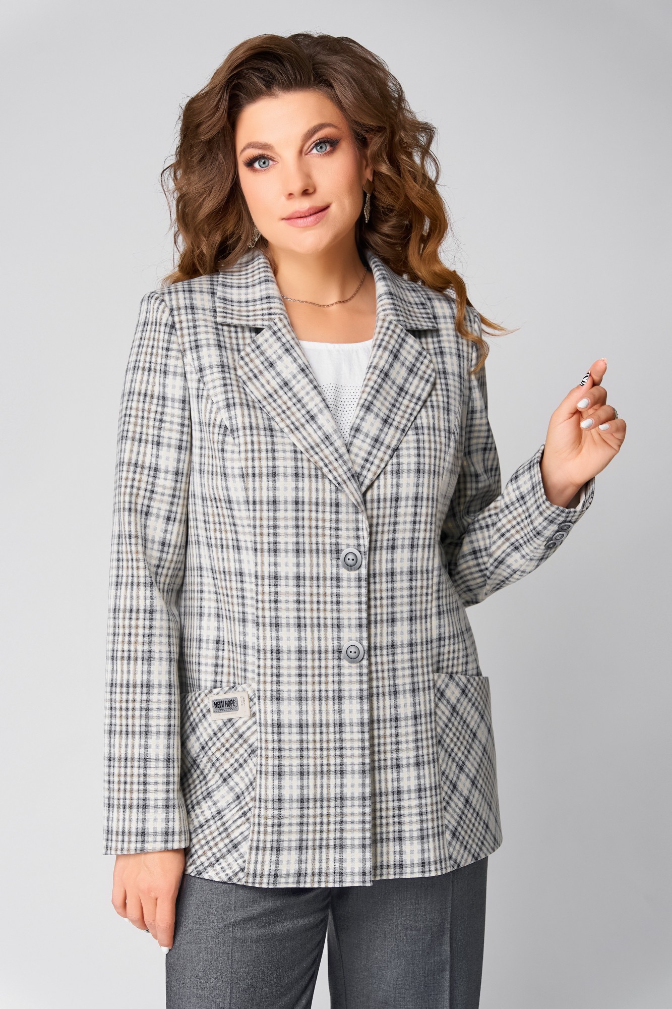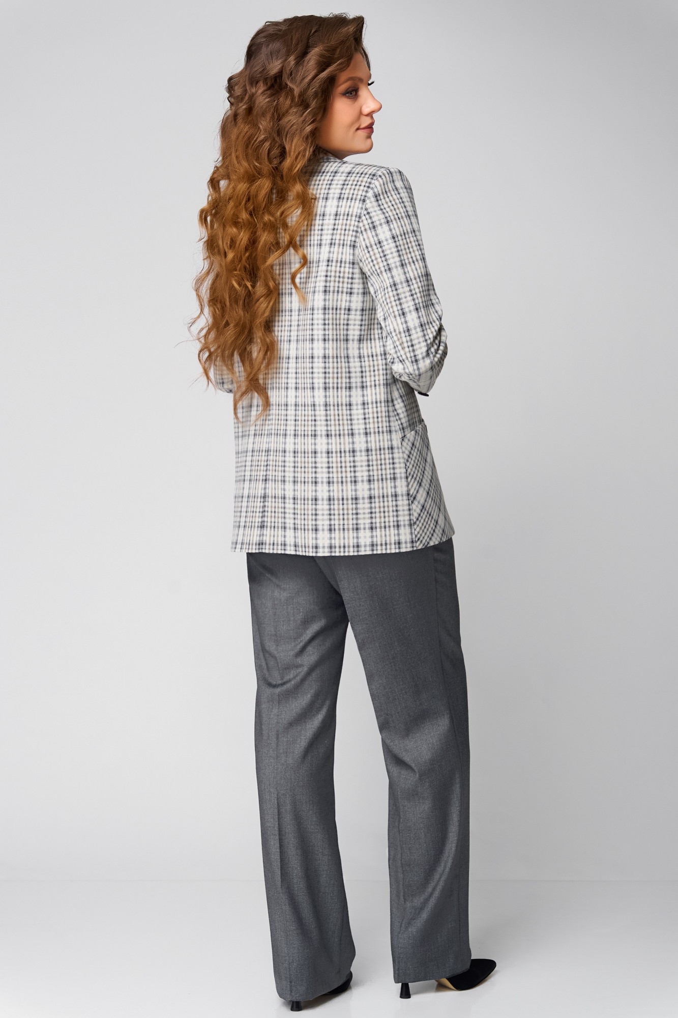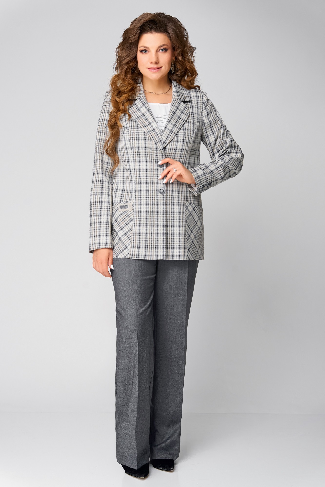 Брючный костюм FITA 1487 тройка бежево-серый