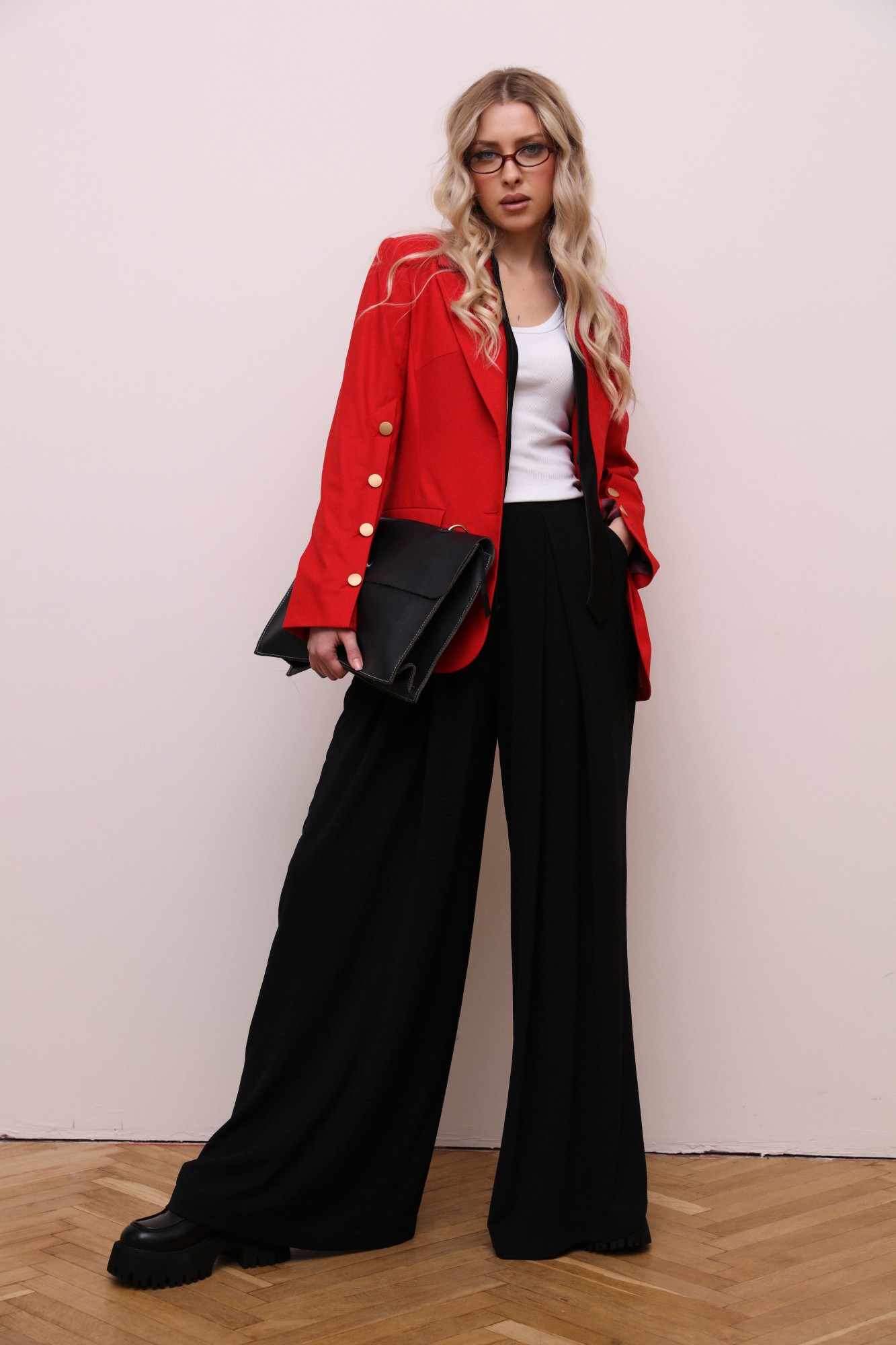 жакет - 30% вискоза, 68% полиэстер, 2% эластан, брюки - 25% вискоза,75% полиэстер