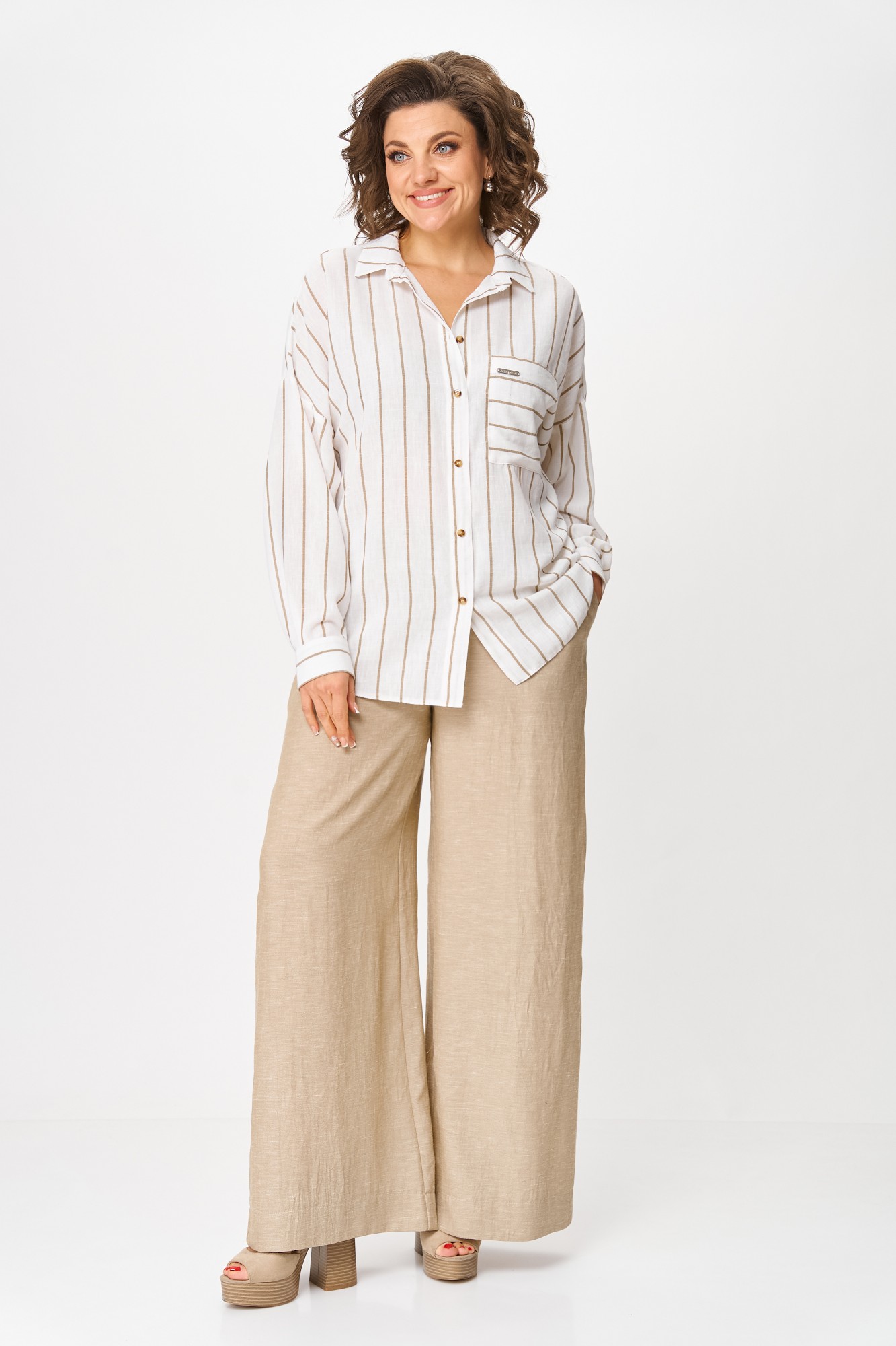 Брючный костюм Michel Chic 1425 бежевый, белый