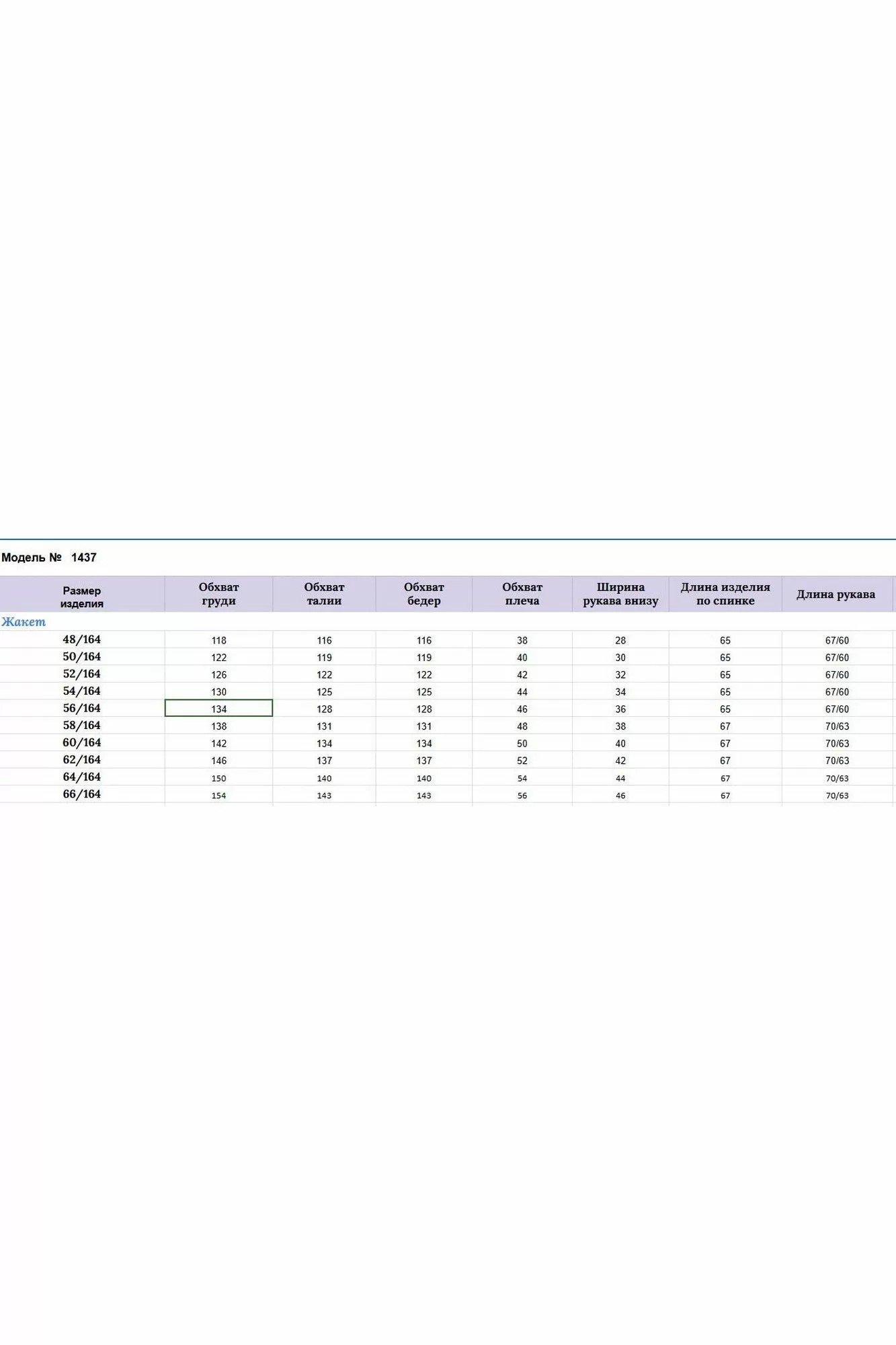 Таблица размеров